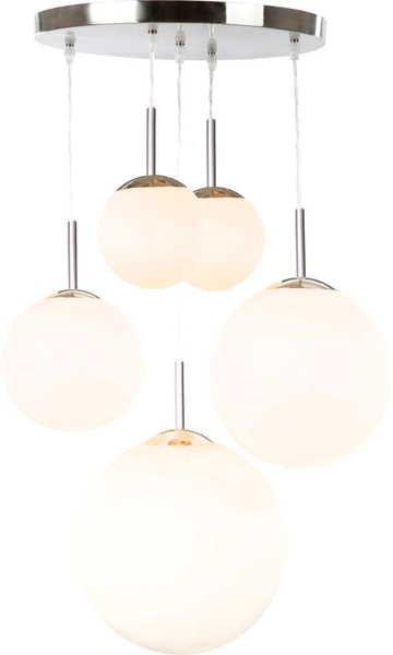 Questa futuristica lampada a sospensione attira l'attenzione con l'affascinante disposizione dei suoi cinque elementi luminosi in diverse altezze e in diverse dimensioni. Forma e funzione si incontrano qui in forma perfetta. Anche le lampadine a LED possono essere utilizzate con questa luce.