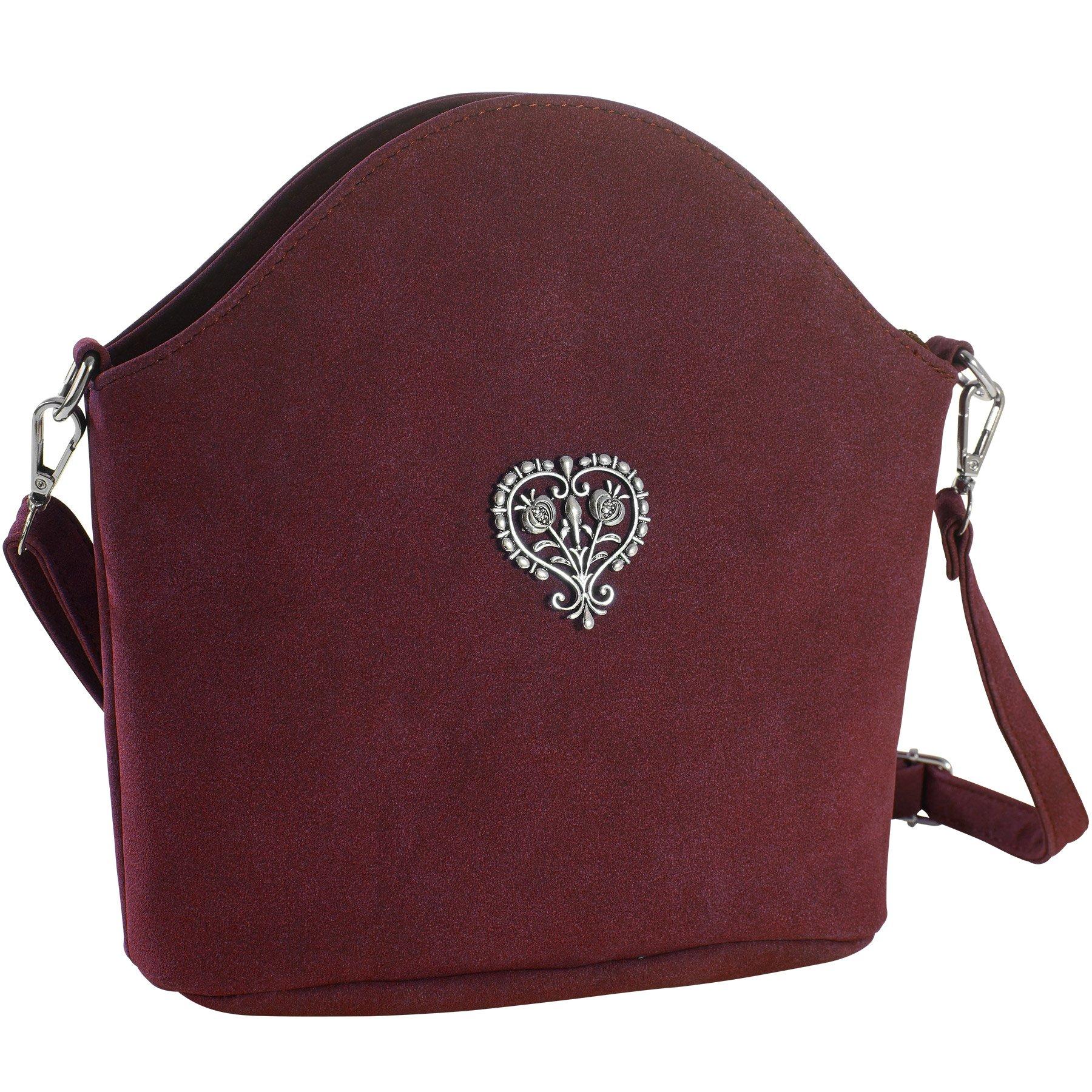 La borsetta Blütenherz, dalla morbida superficie in velours, si propone come un accessorio di carattere. Sulla parte anteriore presenta un'applicazione in metallo a forma di cuore contornata da fiori con steli e foglie. L'interno è sufficientemente capiente per contenere cellulare, chiavi e portafoglio. Un ulteriore spazio dove riporre l'occorrente viene offerto dallo scomparto laterale con cerniera lampo. Un bottone magnetico a pressione e una cerniera lampo provvedono a chiudere in modo sicuro la borsa a tracolla. La tracolla staccabile è regolabile in lunghezza ed è così in grado di adattarsi perfettamente a qualsiasi corporatura e altezza.