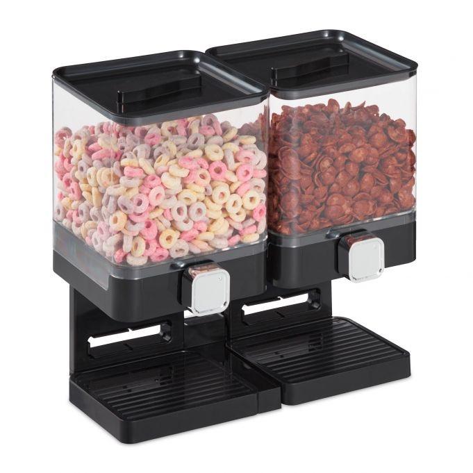 Il doppio dispenser per cereali mantiene freschi muesli e cereali grazie alle chiusure ermetiche, garantendo una croccantezza duratura. Ideale per conservare caramelle, frutta secca e chicchi di caffè, aggiunge praticità e stile a qualsiasi cucina.