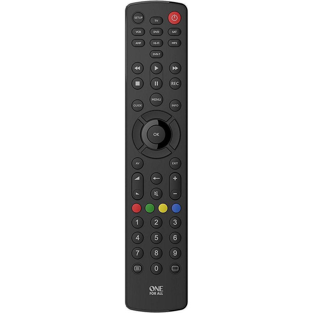 One For All Basic Contour 8. Compatibilità marca: Universale, Utilizzo appropriato telecomando: TV, Set-top box TV, DVD/Blu-ray, Altoparlante Soundbar, Interfaccia: IR Wireless. Numero di dispositivi supportati: 8. Tipo di ingresso: Pulsanti. Funzione Tel