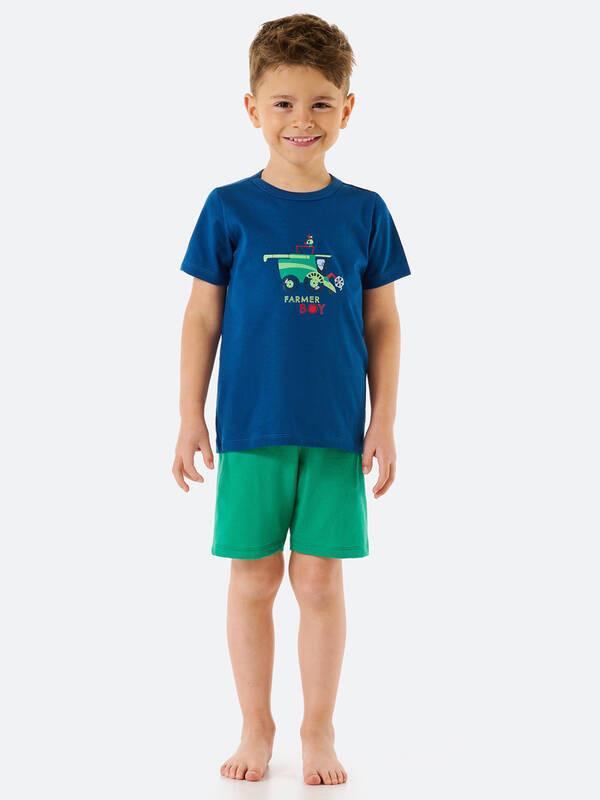 Maglia a maniche corte con girocollo e stampa "Farmer Boy" sul davanti, pantaloni corti con morbida cintura in vita