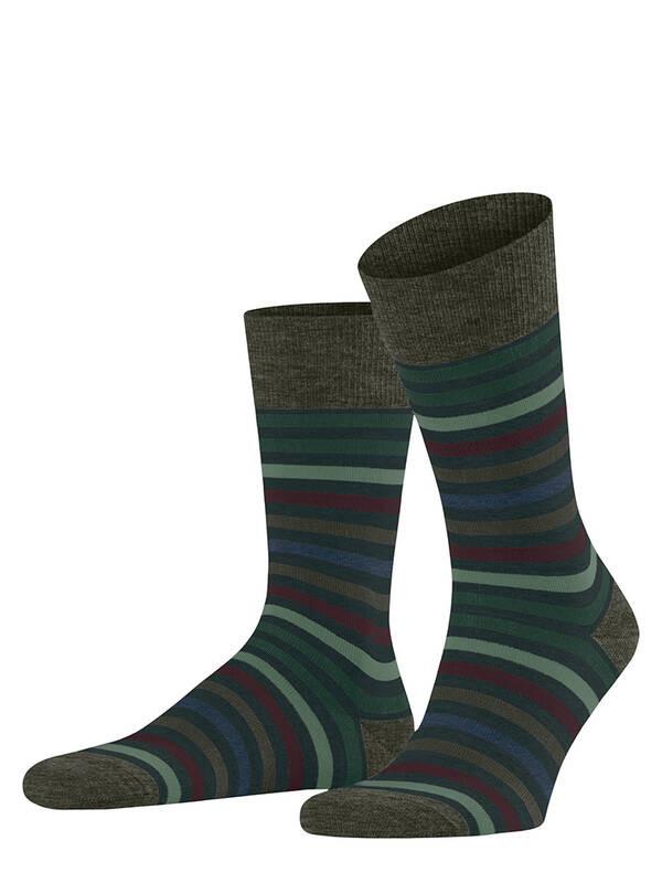 Queste calze combinano lana climatizzante con cotone fine gassato e mercerizzato, rendendole un compagno perfetto per tutti i giorni. Presentano un attraente design a righe multicolore con uno speciale effetto filato.