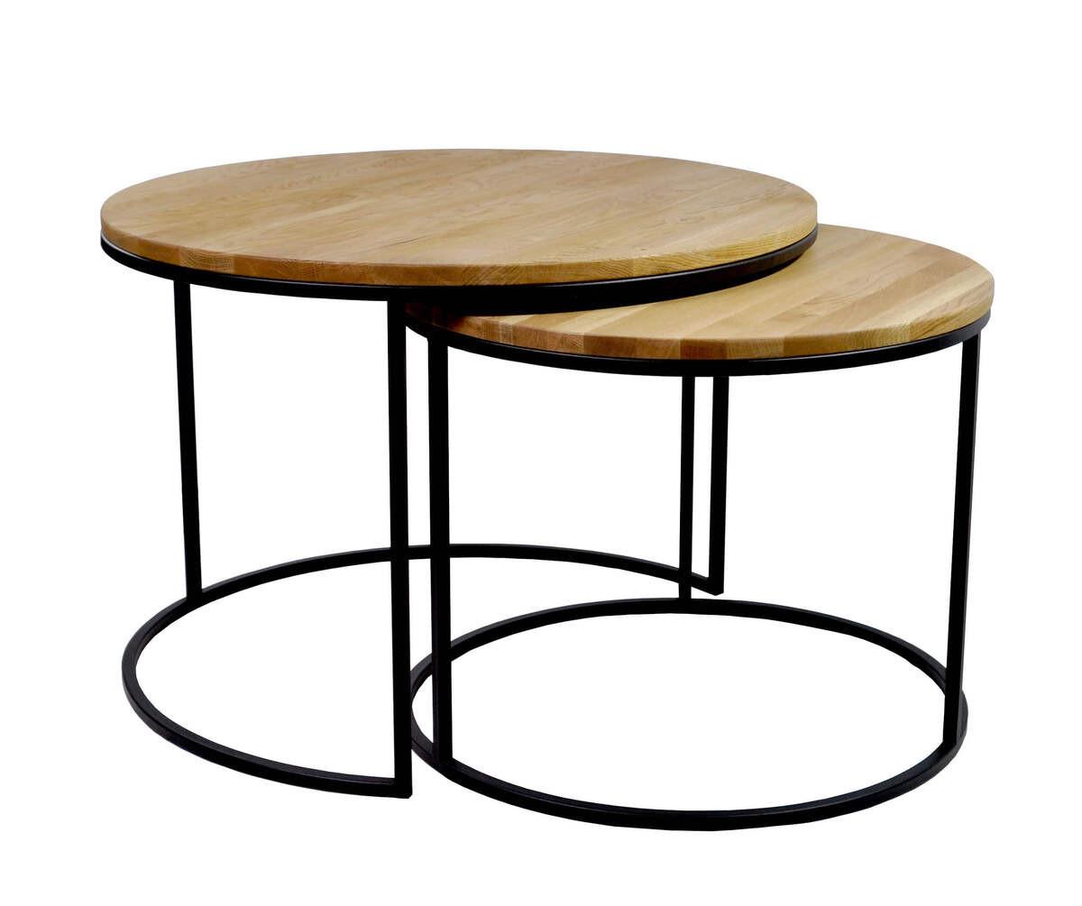 Tavolino in rovere selvatico oliato 18mm, gambe in metallo verniciato a polvere nero 15x15mm, tavolo grande: 75 x 75 x 50 cm, tavolo piccolo: 60 x 60 x 45 cm