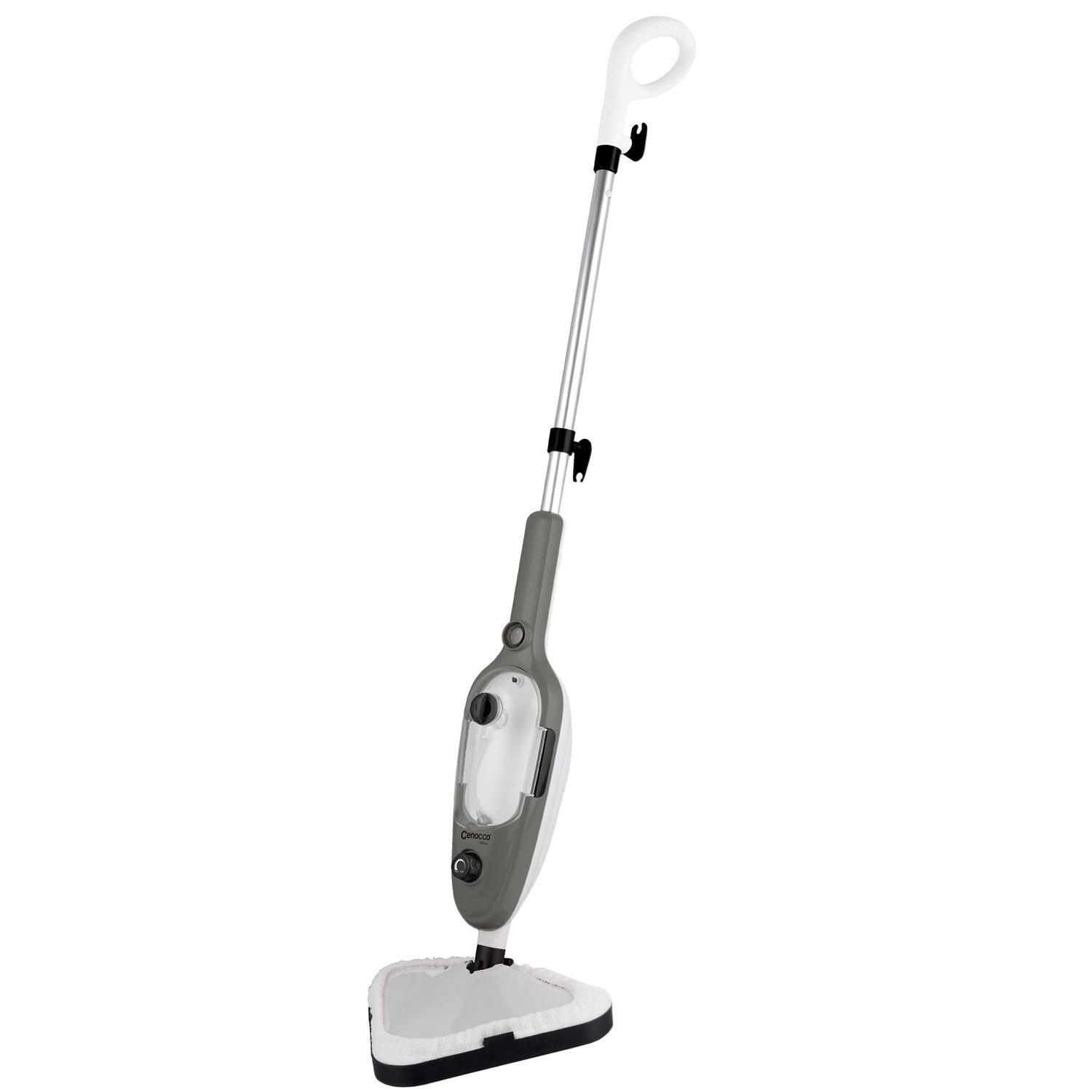 Questa scopa a vapore con diversi accessori permette di pulire tutta la casa in modo efficiente. Gli accessori includono panni in microfibra per la pulizia di pavimenti e mobili, una base per la pulizia di tappeti e spazzole, raschietti e bocchette per la pulizia di finestre, fornelli e lavello. Il mocio può essere utilizzato sulla maggior parte dei pavimenti resistenti al calore, inclusi piastrelle, marmo, pietra e linoleum. Tutti gli accessori possono essere fissati alla base del mocio che consiste in un serbatoio dell'acqua con una capacità di 45 cl. Un serbatoio pieno è sufficiente per un massimo di 20 minuti di pulizia. Il serbatoio ha una manopola girevole dove è possibile selezionare la forza del vapore.