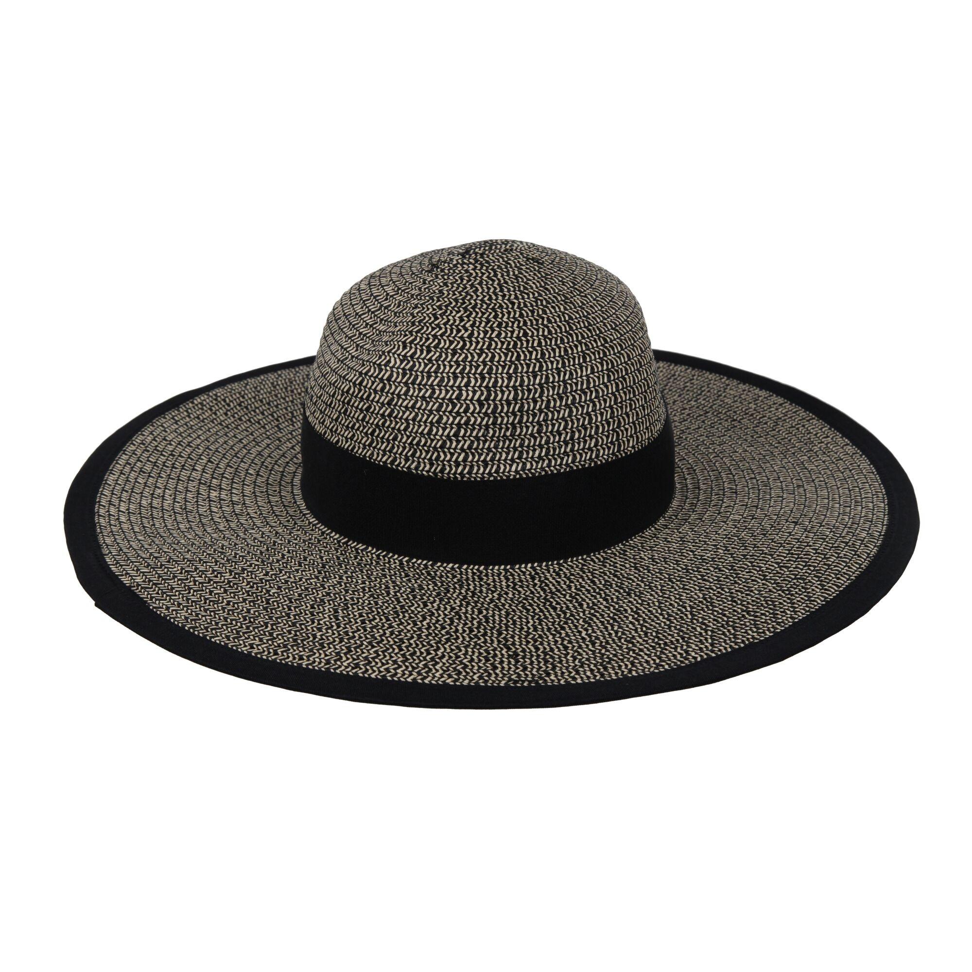 Questo cappello da sole presenta un'ampia tesa, che offre ampia ombra e protezione. Il design include una fascia a contrasto attorno alla corona, aggiungendo un dettaglio elegante all'aspetto generale.