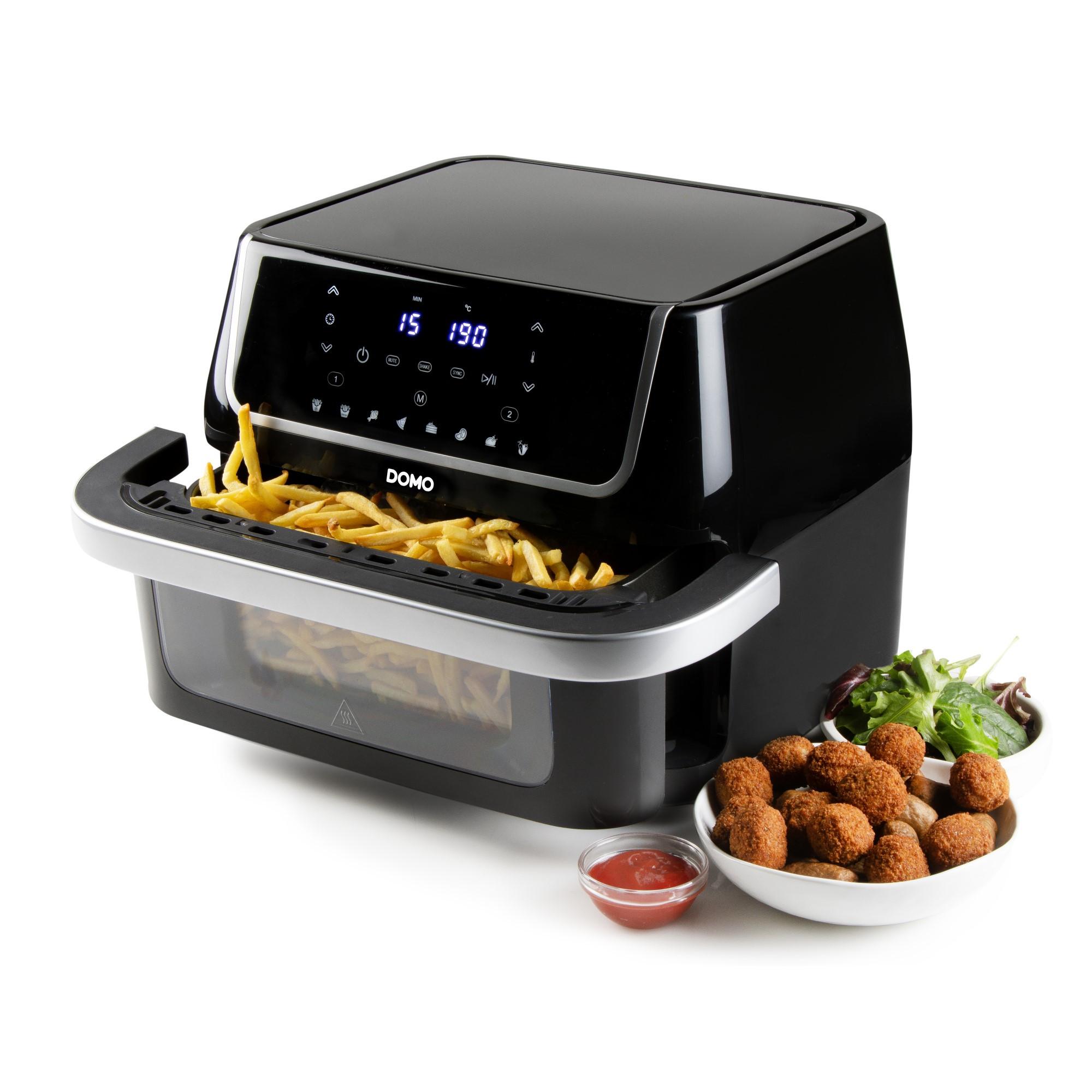 La friggitrice ad aria calda DO544FR di Domo consente di friggere a basso contenuto di grassi con la massima flessibilità grazie a zone di cottura variabili e alla moderna tecnologia dell'aria calda.Capacità flessibile: 10 litri o 5+5, 6+4, 7+3 litri grazie alla parete divisoria rimovibileSalubrità della frittura: Fino all'80% di grassi in meno rispetto alle friggitrici tradizionali grassi rispetto alle friggitrici convenzionaliControllo personalizzato: zone di cottura separate con timer & funzione SYNCVeloce circolazione dell'aria calda: Risparmio energetico e cottura uniformeConfortevole Funzionamento: 8 programmi, timer da 60 minuti & finestra di visualizzazioneCon la friggitrice ad aria calda DO544FR, è possibile cucinare patatine fritte, carne, dolci e molto altro ancora in pochissimo tempo, senza bisogno di olio aggiuntivo. Due zone di cottura controllabili in modo indipendente consentono di preparazione di piatti diversi allo stesso tempo, mentre la funzione funzione SYNC assicura che tutto sia pronto nello stesso momento. Il display digitale a sfioramento consente un controllo preciso della temperatura (80-200 °C) e del tempo, mentre la funzione di promemoria per lo scuotimento degli alimenti alimenti garantisce risultati perfetti. Grazie al rivestimento antiaderente di alta qualità rivestimento antiaderente di alta qualità, all'alloggiamento cool-touch e alla griglia inclusa nella confezione. la pulizia è particolarmente facile.