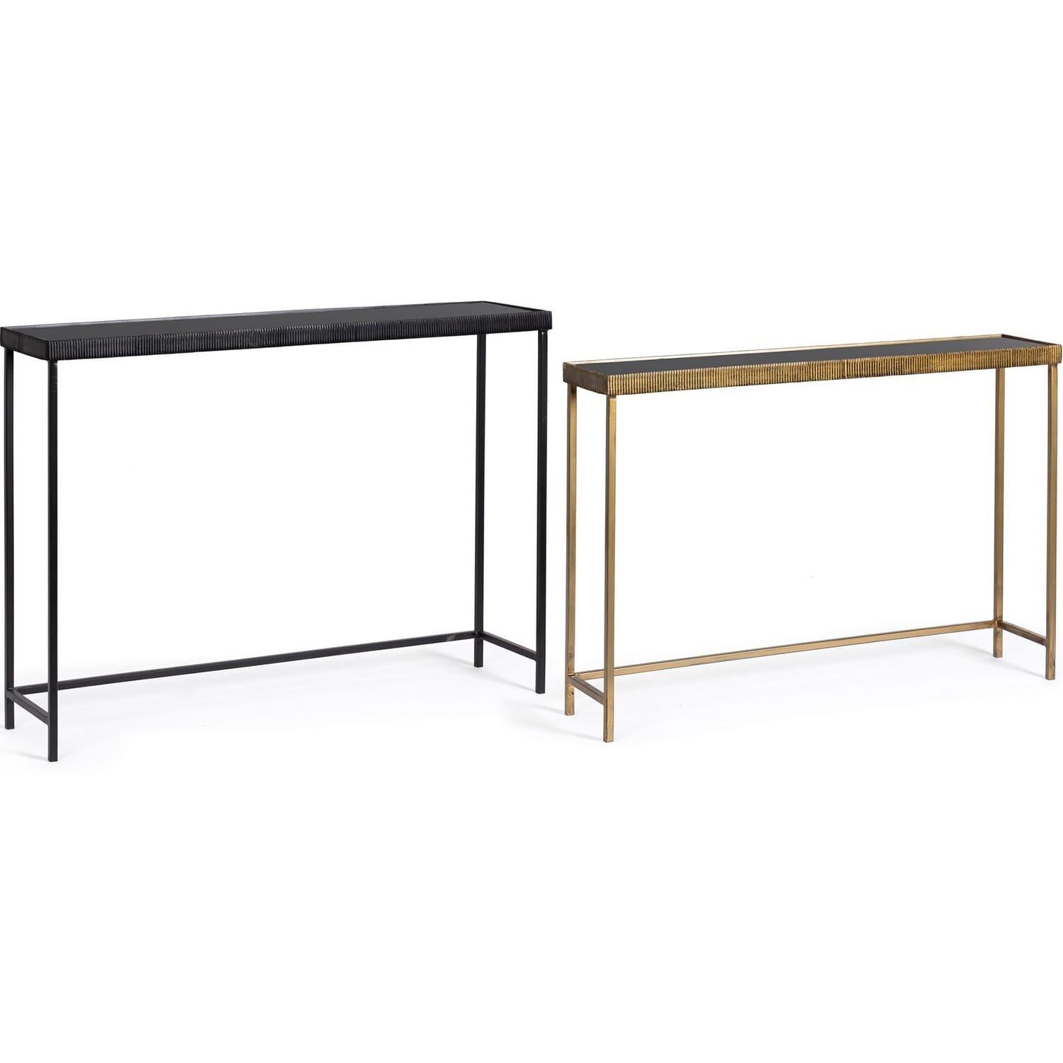 Tavolo consolle in acciaio verniciato a polvere epossidica e vetro temperato, colore oro e nero, tavolo piccolo: 97 x 22 x 69h / tavolo grande: 107 x 26 x 79h