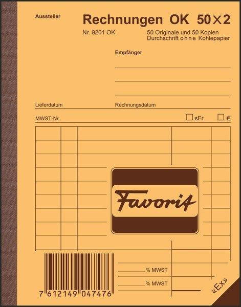 Favorit, FAVORIT Formularbuch Rechnungen A6 9201 OK Durchschreibepapier 50x2 Blatt
