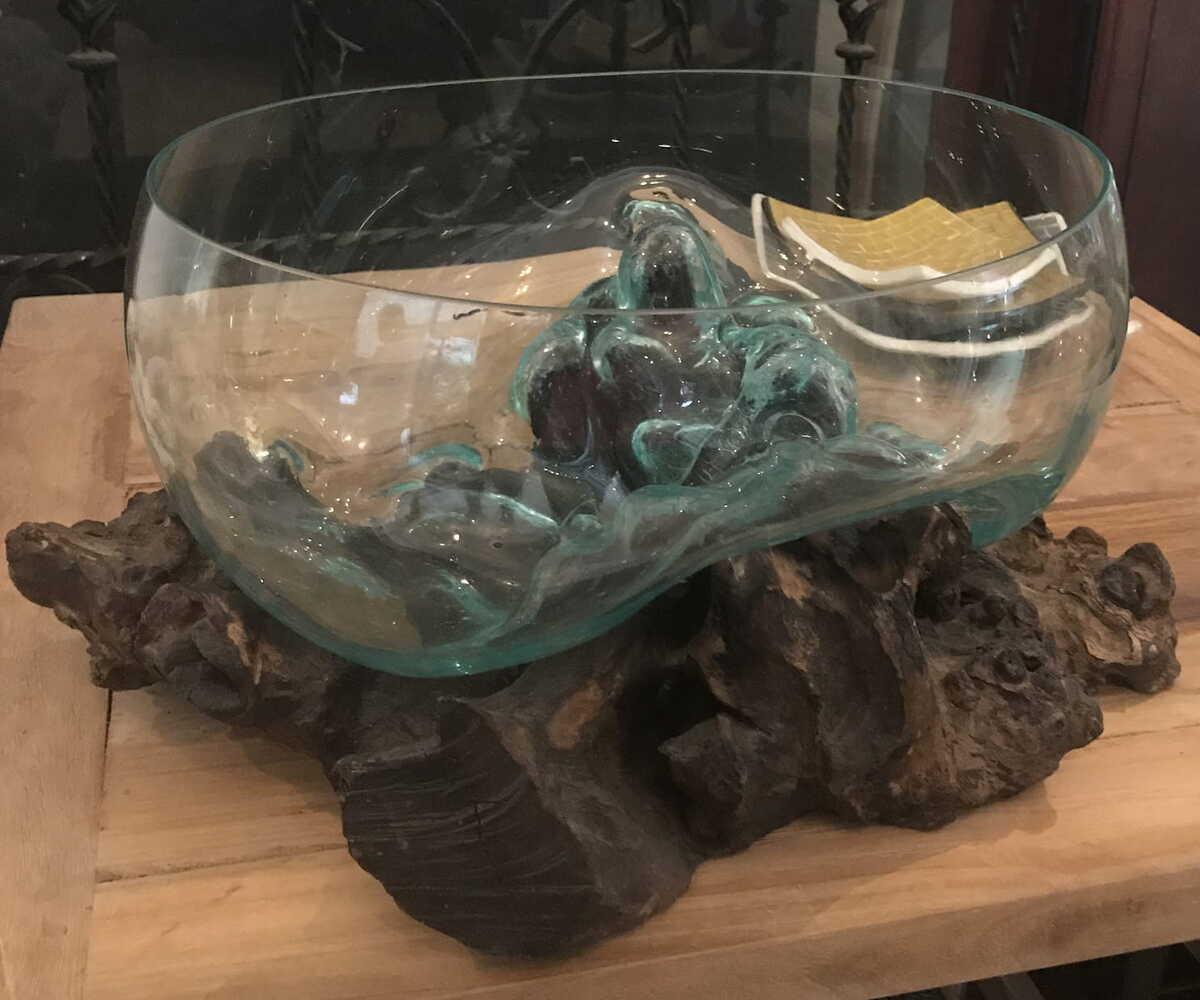 Radice di teak con ciotola in vetro soffiato a boccaNota importante: ogni pezzo è unico e può differire dall'immagine.Ø: circa 30 cmL/A: circa 40-55 x 25-35 cm