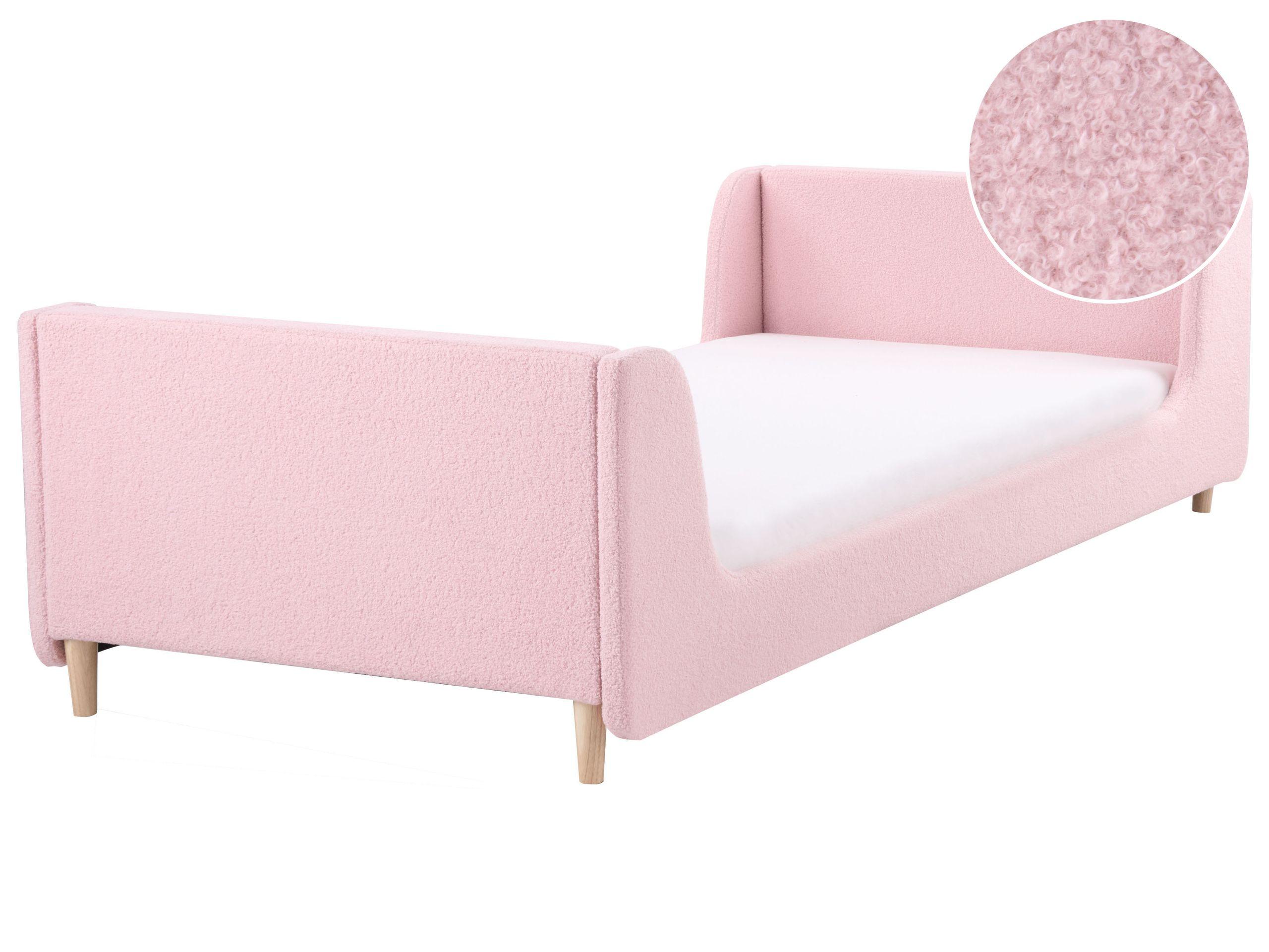 Elegante letto imbottito. Crea uno spazio per dormire accogliente e stiloso con questo letto singolo dal design elegante. Rivestito in morbido tessuto bouclé, offre una sensazione di calore e accoglienza, perfetto per la stanza di un bambino. La cornice delicatamente curvata con pannelli laterali bassi garantisce un ambiente intimo e sicuro, facilitando l’ingresso e l’uscita. Supportato da gambe robuste, questo letto è la combinazione perfetta di comfort, fascino e funzionalità.