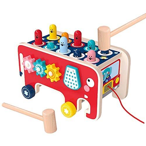 Activity-board, Klopfbank Holz mit 2 Schlägeln, Hammerspiel ab 1 Jahr, Klopfbank Schlagen Elefant Spiel,