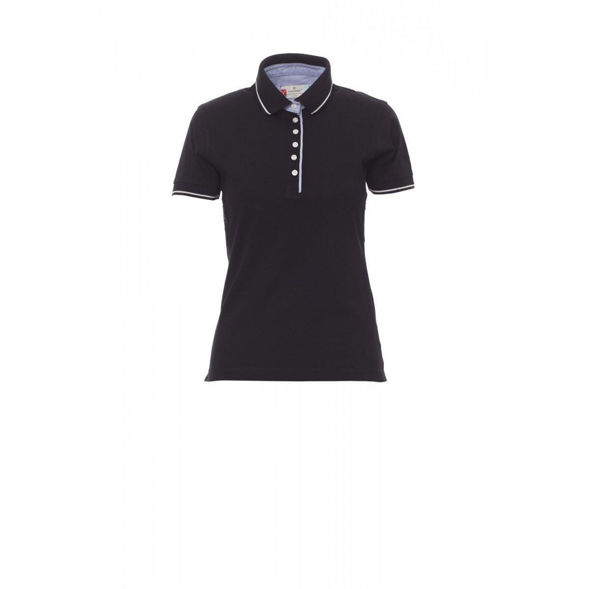 La polo Payper Leed è una polo da donna a maniche corte e sagomata con sei bottoni bianchi. Presenta un interno collo, una patta e spacchi laterali in Oxford azzurro cielo. Il collo e i bordi delle maniche sono a costine con un sottile profilo a contrasto. Dettagli aggiuntivi includono occhielli sotto le braccia, spacchi laterali con cuciture di rinforzo, un nastro di rinforzo laterale, cuciture elasticizzate e un rinforzo profilato sulla scollatura posteriore.