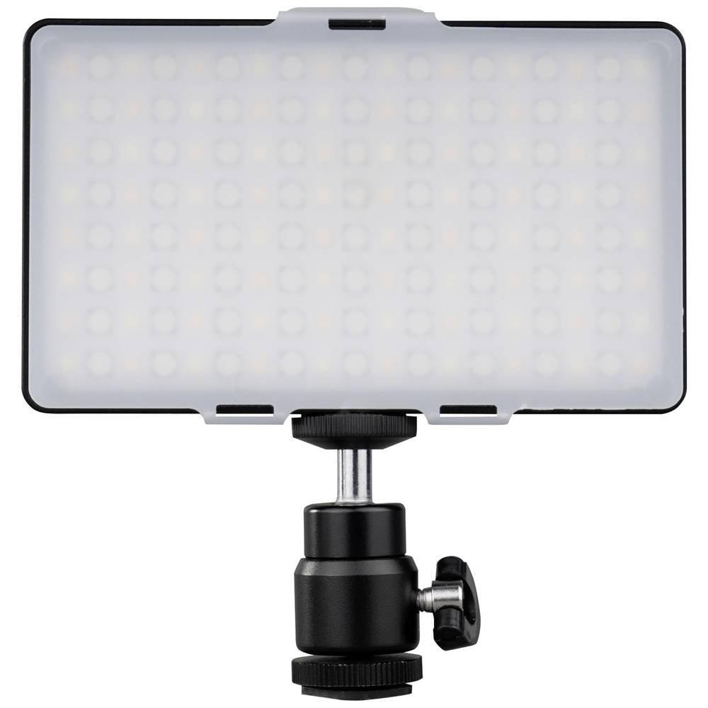 In modalità temperatura del colore è possibile scegliere la temperatura del colore desiderata in incrementi di 100°K da 3000° Kelvin a 6500° Kelvin a luce fredda. In modalità RGB, è possibile scegliere tra un totale di 360 colori diversi: Ogni colore può essere impostato con 100 livelli di intensità esattamente per lo spettro di luce necessario. Oltre 40 diversi effetti luminosi e lampeggianti preinstallati sono disponibili per scenari particolari. La luminosità è regolabile in continuo da 0 a 100% in ogni modalità. Utilizzate il disco diffusore per una luce morbida e ridurre le ombre dure. Riporre il LED RGB in modo continuo in viaggio nella pratica custodia.
