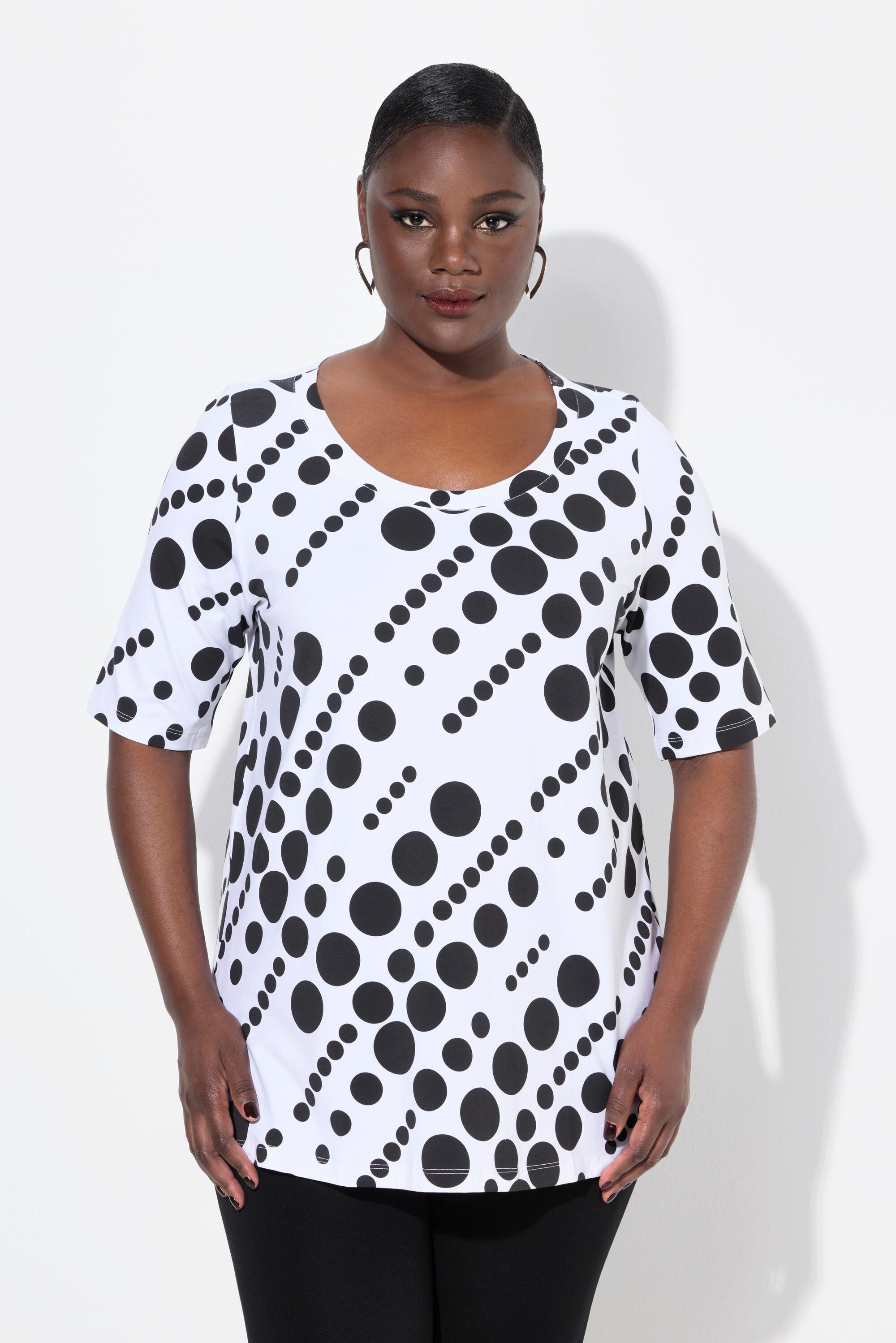 Ulla Popken T-shirt Cotone Pima Pois Taglio Svasato Scollo Rotondo Mezza Manica