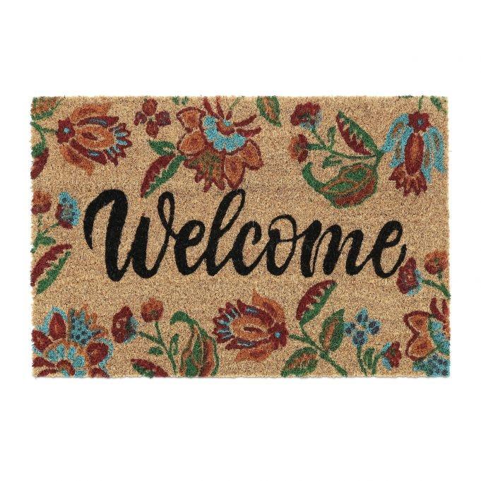 Trasforma il tuo ingresso con il nostro splendido zerbino di benvenuto, decorato con fiori colorati che donano un'atmosfera calda e invitante. Questo zerbino decorativo non è solo piacevole alla vista con il suo motivo floreale e le graziose lettere di benvenuto curve, ma è anche pratico e resistente. Realizzato in fibre di cocco naturali, questo tappeto è robusto e resistente alle intemperie, il che lo rende ideale sia per uso interno che esterno. Il retro in PVC antiscivolo assicura che lo zerbino rimanga in posizione, fornendo una superficie sicura e stabile per asciugare le scarpe.