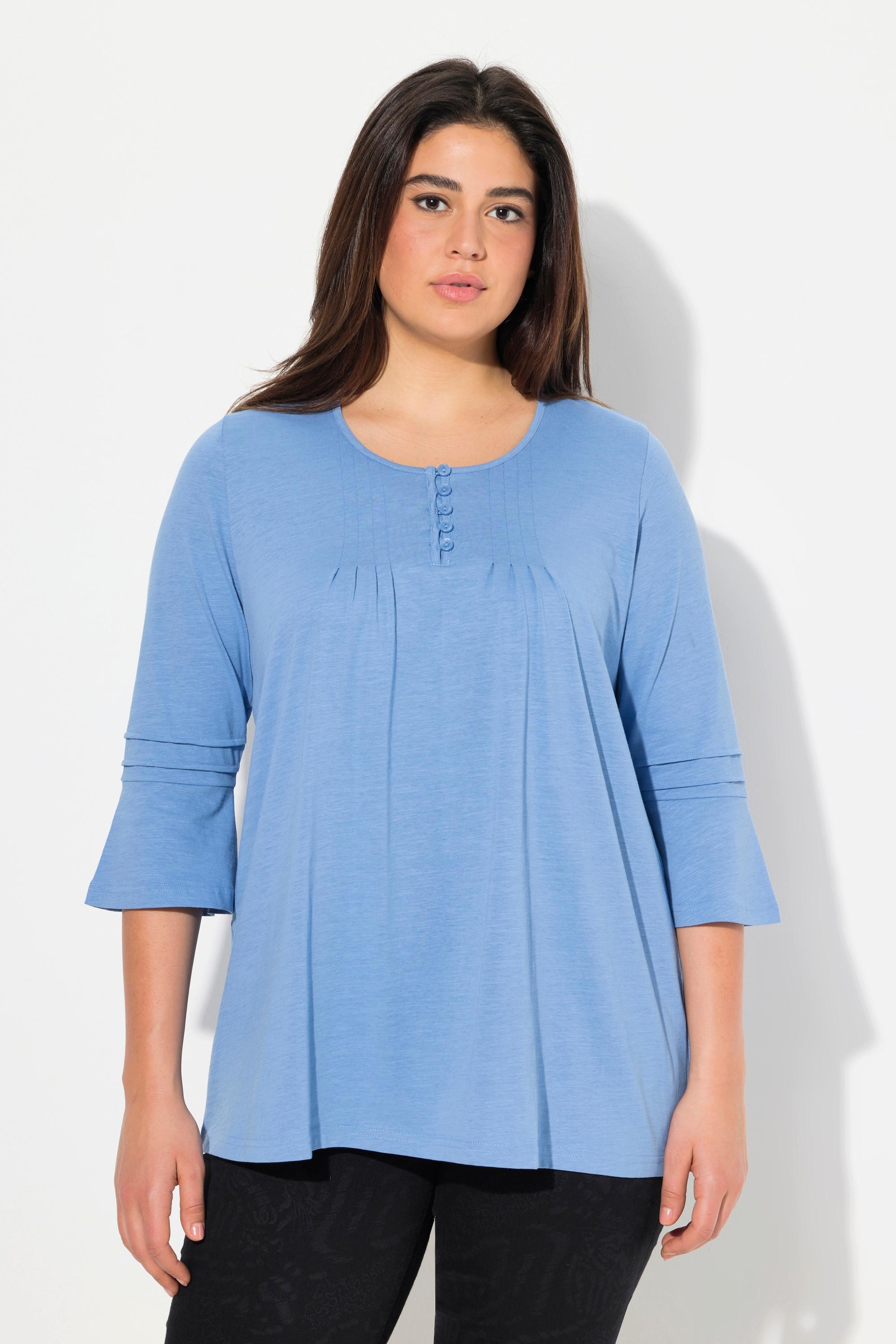 Ulla Popken Maglia Pieghe Decorative Scollo a Girocollo Maniche 3/4 con Volant Taglio Svasato