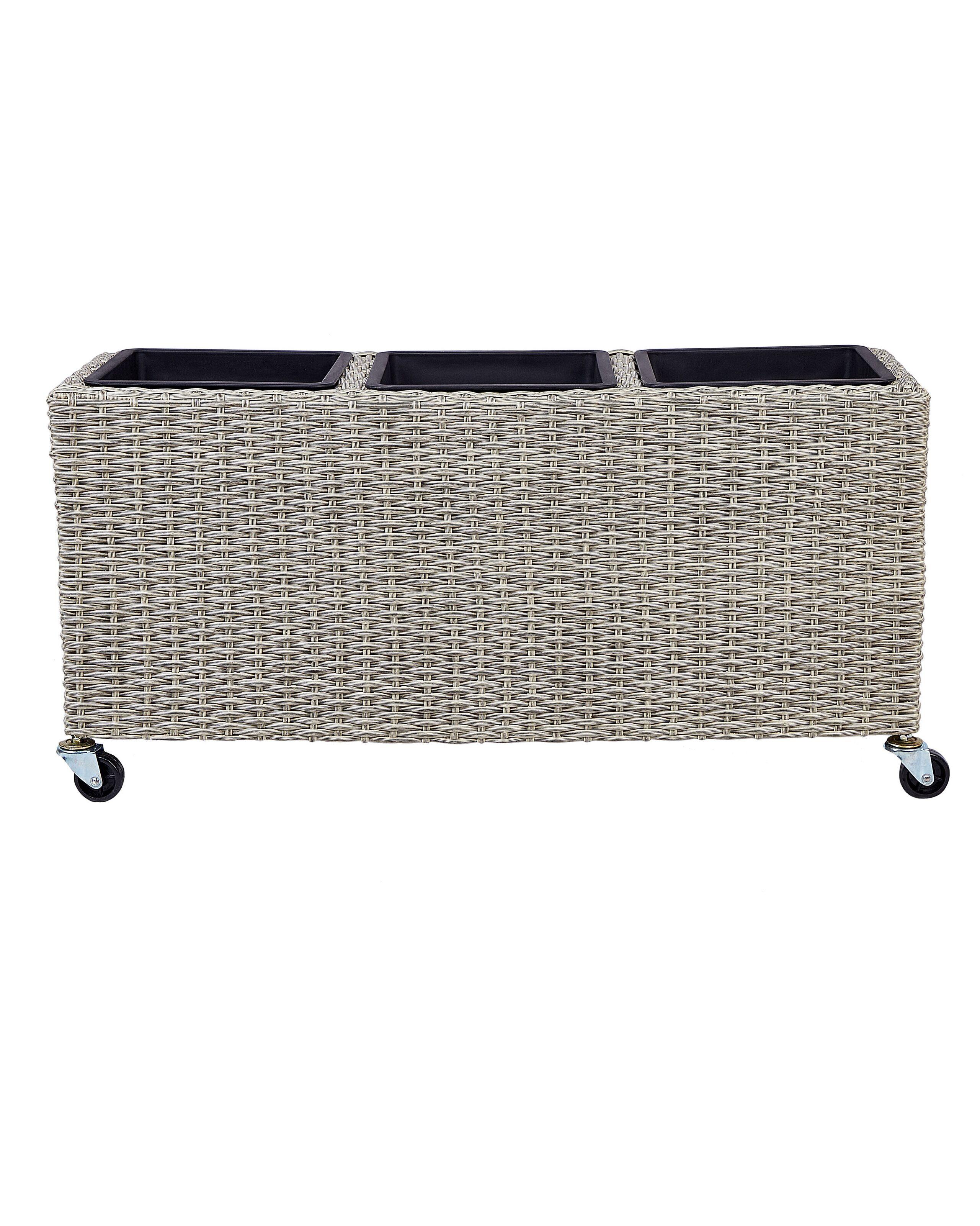 Vaso grande per piante. Arricchisci il tuo spazio con un tocco rilassante di natura grazie a questo funzionale vaso da fiori. Progettato con ruote per una mobilità senza sforzo, ti consente di spostare i tuoi fiori al chiuso in caso di cattivo tempo. Il vaso include tre inserti di plastica per una gestione facile delle piante, rendendolo un modo elegante per esporre i tuoi fiori a casa o sul balcone.
