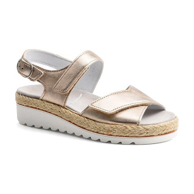 I sandali Trixi H sono progettati per un look casual ed estivo. Realizzati in pelle metallizzata, offrono uno stile elegante e sofisticato. La pelle metallizzata è utilizzata per la tomaia e la parte superiore, mentre la fodera in pelle garantisce morbidezza e qualità superiore. Le solette sono anch'esse in pelle, rimovibili per una facile manutenzione. Le suole esterne sono realizzate in gomma e corda, offrendo eccezionale traspirabilità e leggerezza. I tacchi misurano 50 mm, ideali per un look chic ed elegante. Questi sandali sono perfetti per le vacanze, la spiaggia o l'uso quotidiano, combinando comfort, traspirabilità e moda per un look estivo irrinunciabile.