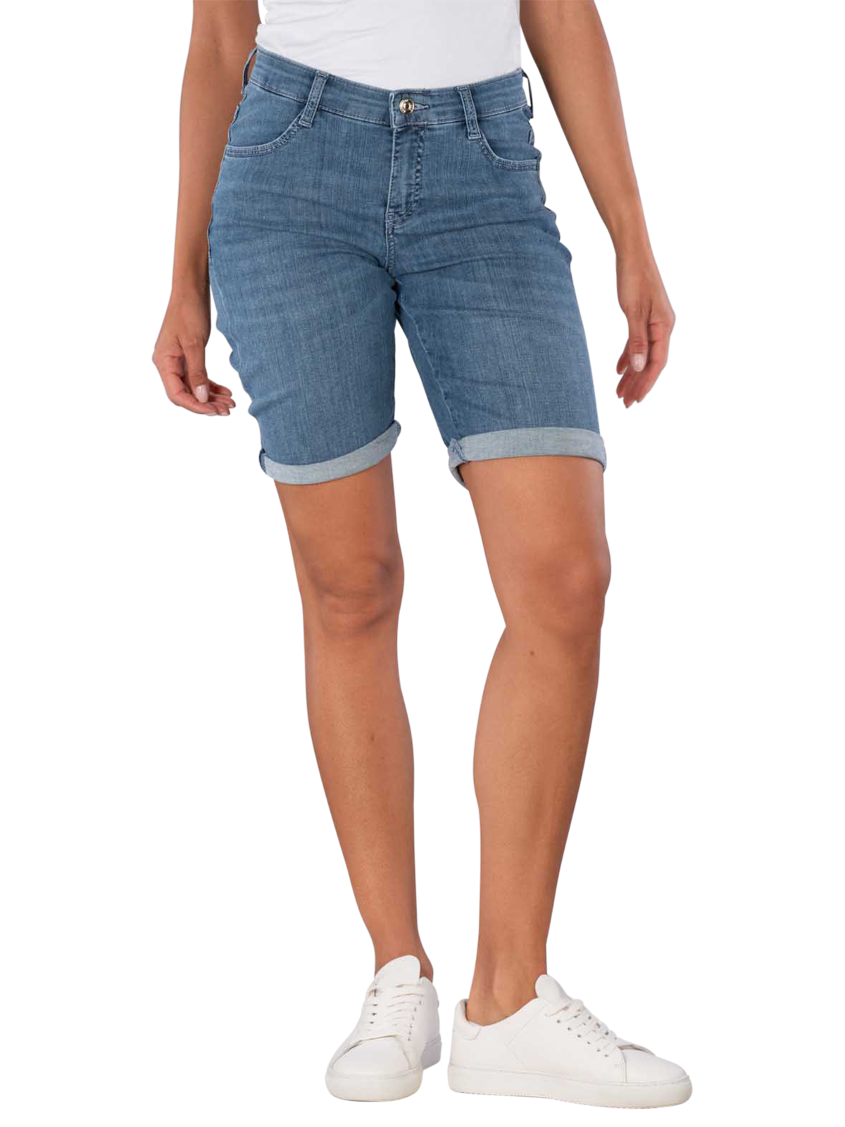 Questi jeans shorty sono realizzati in denim morbido e leggero, offrendo comfort e un look elegante. Il design presenta un classico stile a cinque tasche e una chiusura con bottone e cerniera.