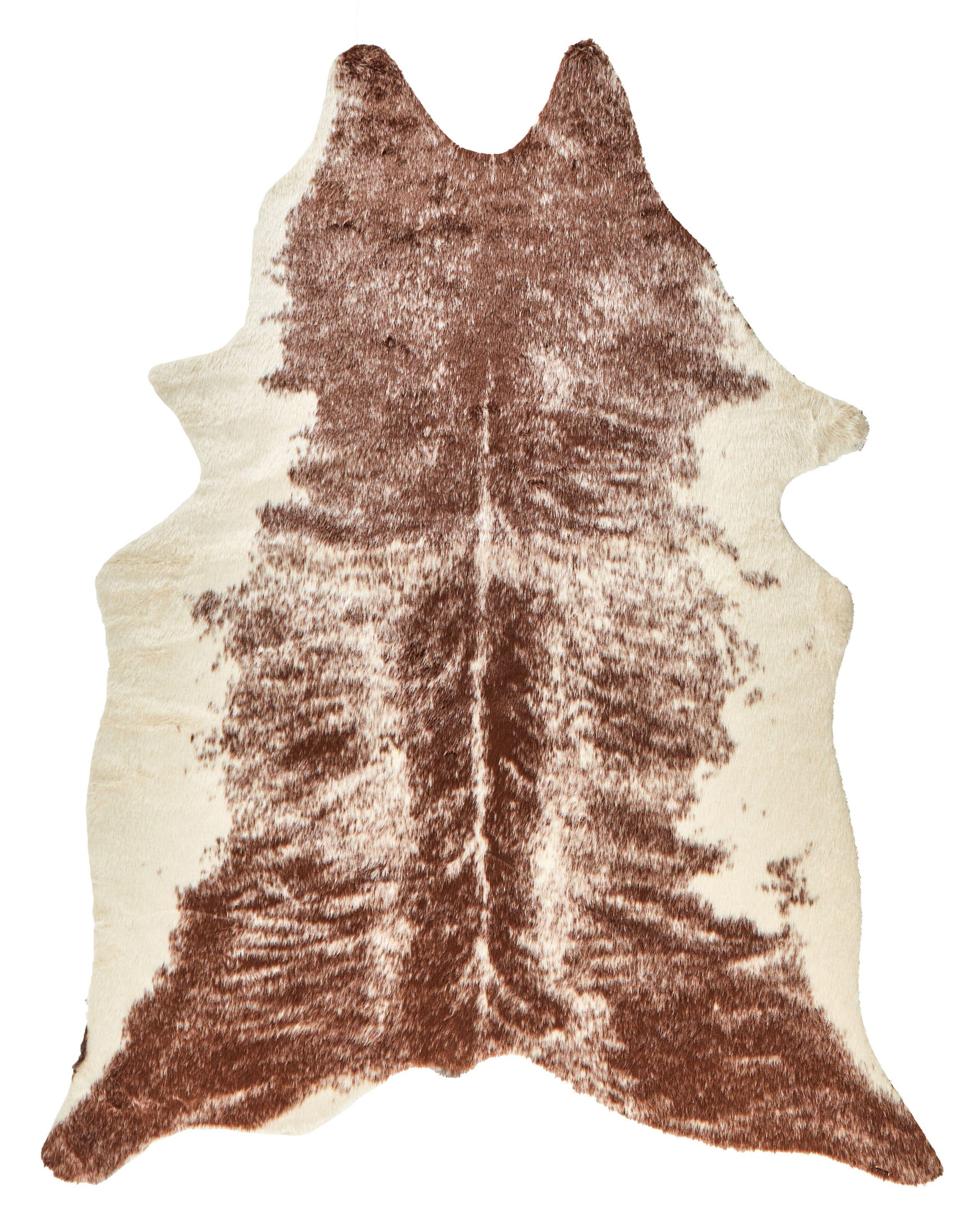 Tappeto in finta pelle di mucca. Questo affascinante tappeto dalla forma irregolare aggiunge un fascino rustico a qualsiasi spazio. Il suo vello multicolore imita perfettamente la pelle di mucca e ha un supporto antiscivolo. Da posizionare accanto al letto o al divano, è perfetto per aggiungere calore dove serve.