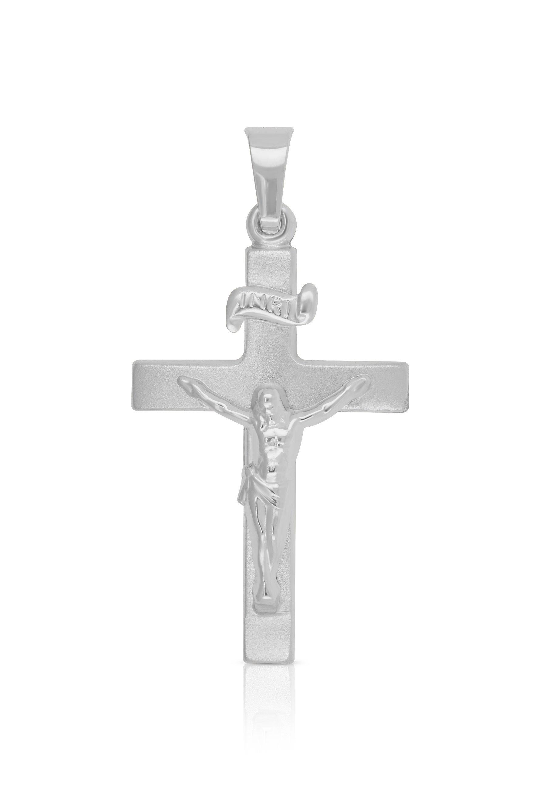 MUAU Schmuck Anhänger Kreuz Weissgold 750 Christus 32x16mm