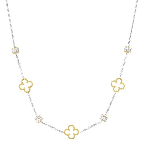 Questa collana Charles Garnier in argento 925 rodiato e dorato è decorata con motivi che alternano trifogli traforati e motivi a forma di botte pavimentati con ossidi di zirconio.