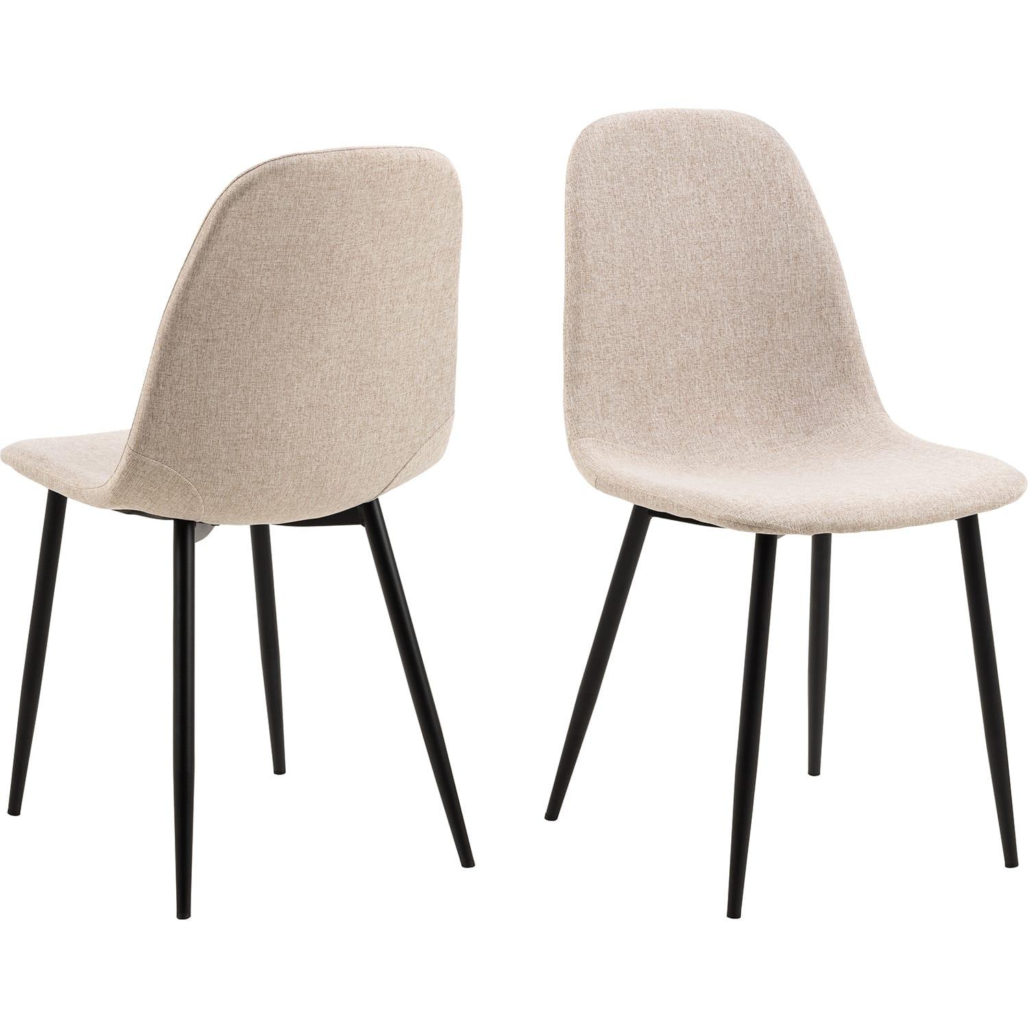 Stile versatile e senza tempo Seduta comoda e curva in tessuto beige Robuste gambe in acciaio nero verniciato a polvere Certificazione FSC per l'approvvigionamento di materiali sostenibili Elegante cucitura a croce per un maggiore comfort Altezza dello schienale: 47 cm per un sostegno ottimale della schiena Protezione efficace del pavimento grazie alle guide in feltro Capacità di carico massima: 110 kg