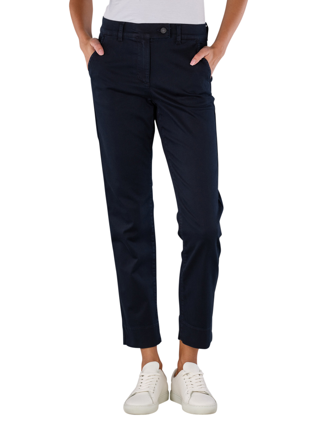 I pantaloni invernali Angels Vera Chino da donna in blu scuro combinano comfort elegante e funzionalità. Questi pantaloni chino a taglio dritto hanno una vita media e colpiscono per la loro composizione di materiali di alta qualità. Una cerniera assicura una facile vestizione e svestizione. Questi pantaloni sono facili da curare con un ciclo di lavaggio delicato a 30 gradi.
