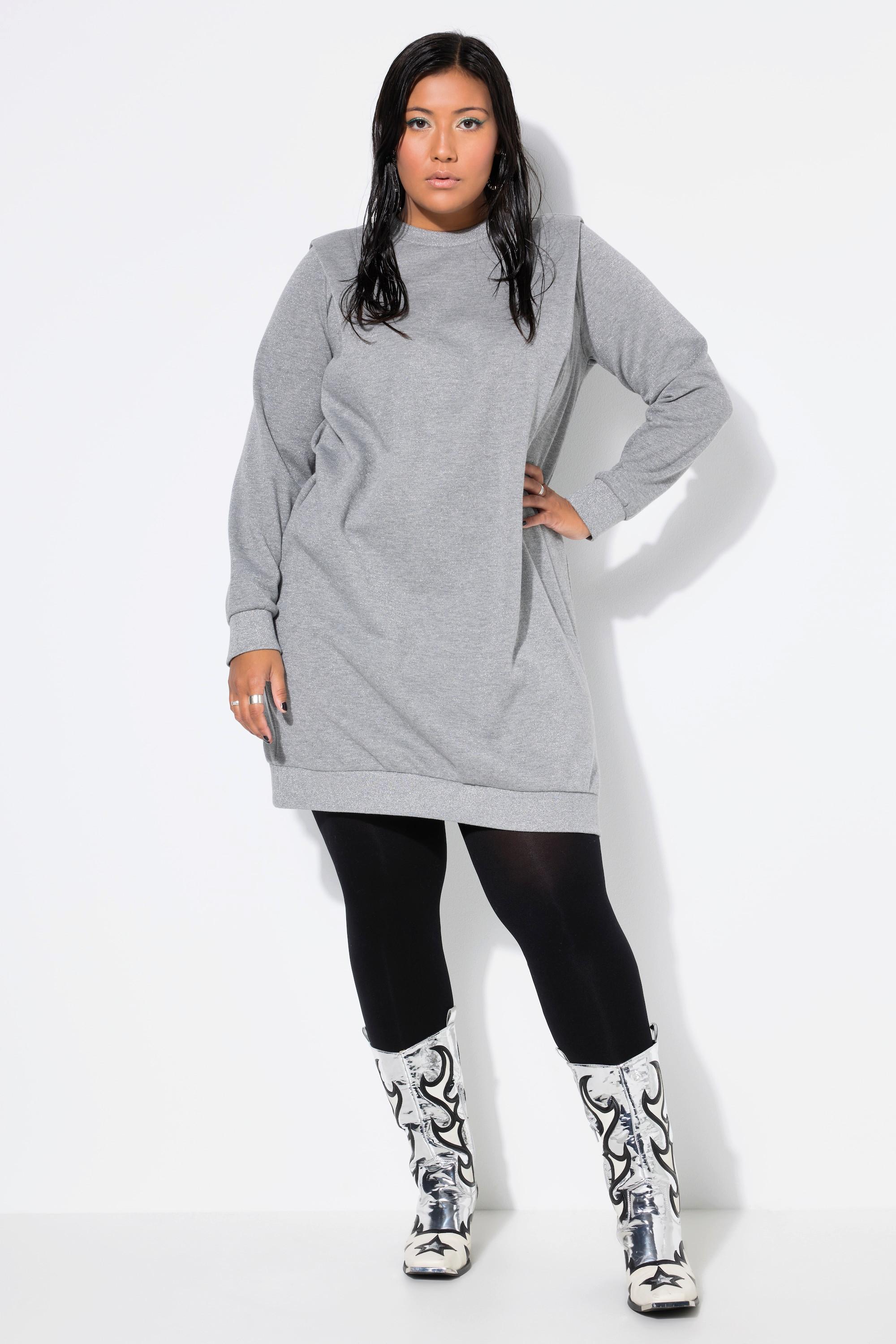 Questo abito felpa oversize offre un look comodo ed elegante. Il design presenta spalle accentuate, aggiungendo un tocco moderno a una silhouette classica. È un capo versatile adatto a diverse occasioni casual.