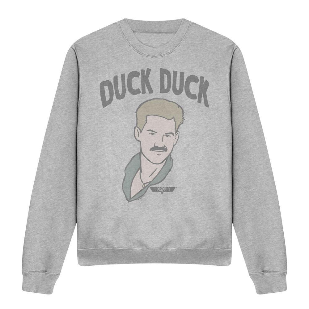 Questa felpa presenta una grafica giocosa del personaggio Goose di Top Gun, con la frase "Duck Duck" sopra. Il design rende un omaggio leggero all'iconico personaggio del film.