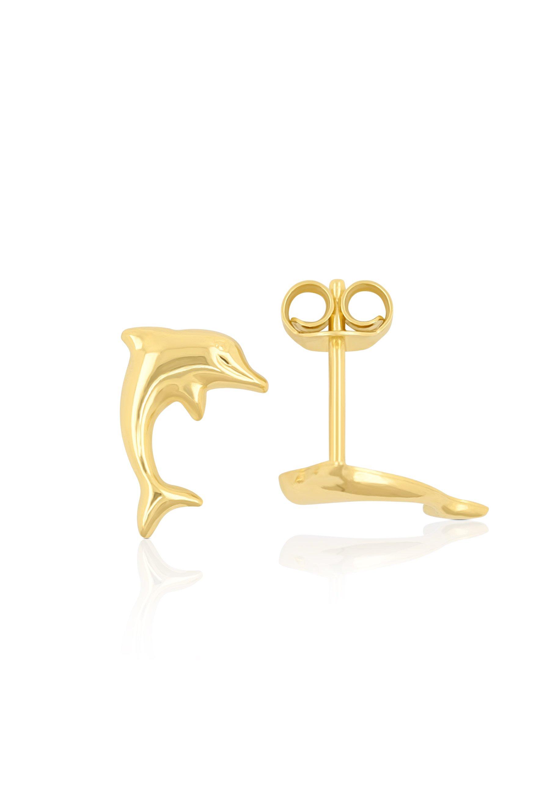 MUAU Schmuck Ohrstecker Delfine Gelbgold 750, 11mm