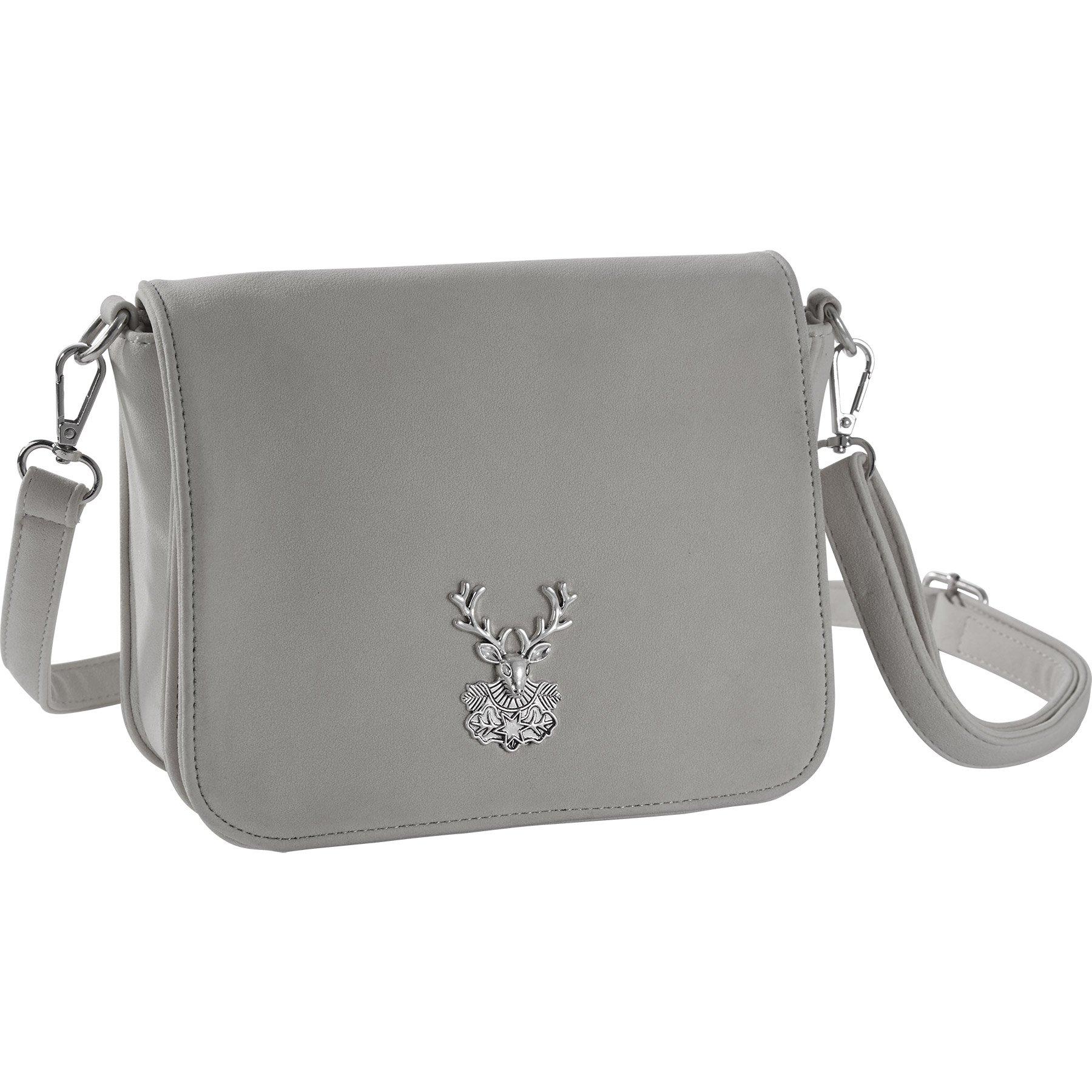 La borsetta Heimatliebe è un'affascinante attrazione. La superficie a tinta unita in velours è impreziosita da un'applicazione in metallo con il motivo di un cervo. L'interno è sufficientemente capiente per contenere tutto ciò che serve, come cellulare e portafoglio. Un ulteriore spazio dove riporre l'occorrente viene offerto dallo scomparto laterale con cerniera lampo. Ancora una cerniera lampo e un bottone magnetico a pressione provvedono, poi, a chiudere in modo sicuro la borsa a tracolla. La tracolla staccabile è regolabile in lunghezza ed è così in grado di adattarsi perfettamente a qualsiasi corporatura e altezza.