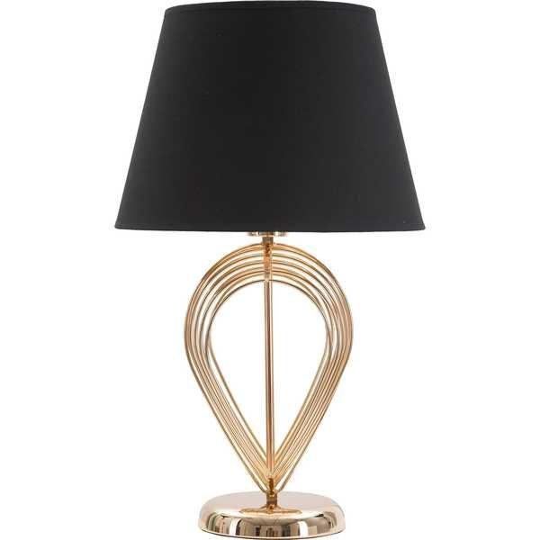 Lampada da tavolo in metallo dorato con paralume in tessuto nero. La lavorazione elegantemente semplice della base e il contrasto tra il nero e l'oro donano ad ogni ambiente un tocco di raffinatezza. La dimensione del paralume è: 32,5 x 22 cm