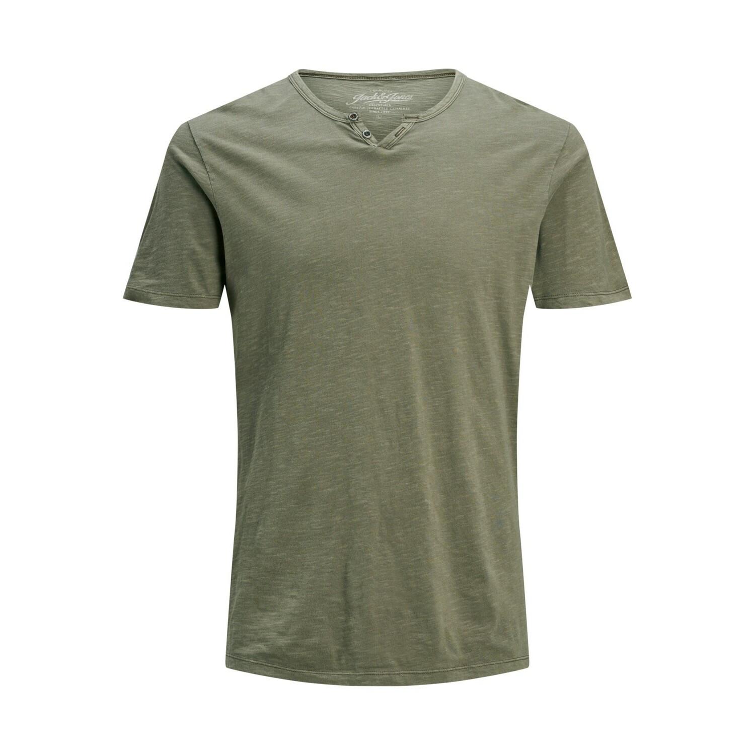 Questa T-shirt presenta uno scollo a spacco ed è realizzata in morbido cotone con aggiunta di stretch per il comfort. Ha una vestibilità regolare e maniche corte, rendendola un'aggiunta versatile a qualsiasi guardaroba.