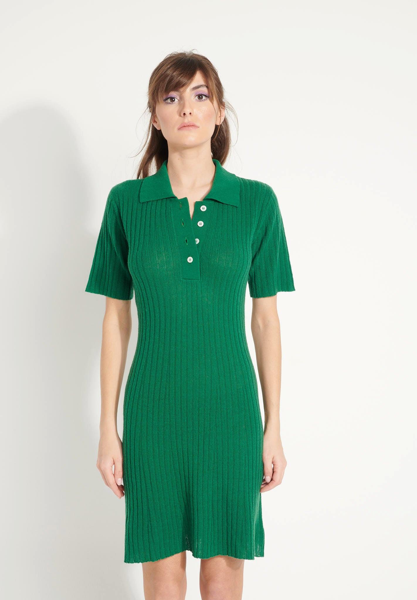 L'abito in maglia a coste AVA 17 offre un'opzione sofisticata e confortevole per varie occasioni. La sua texture a coste fornisce una silhouette lusinghiera, mentre il classico colletto polo e l'abbottonatura aggiungono un tocco di eleganza senza tempo.