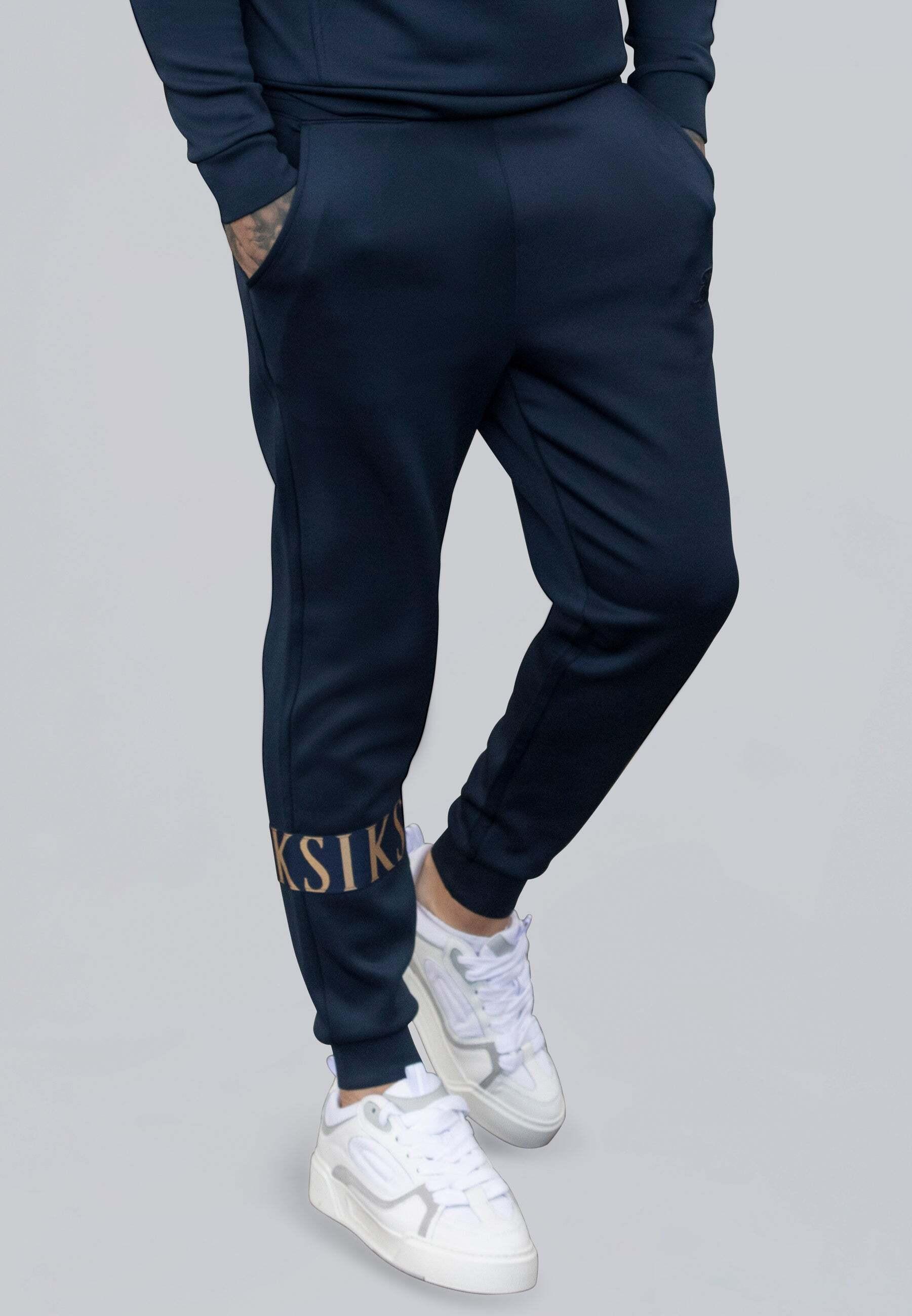 I Dynamic Joggers in blu navy combinano stile e comfort in un design moderno. Con la loro vestibilità muscle fit e il materiale elastico, offrono una combinazione ideale di libertà di movimento e una vestibilità aderente. La scritta dinamica intorno ai polpacci e il logo ricamato aggiungono accenti sportivi.
