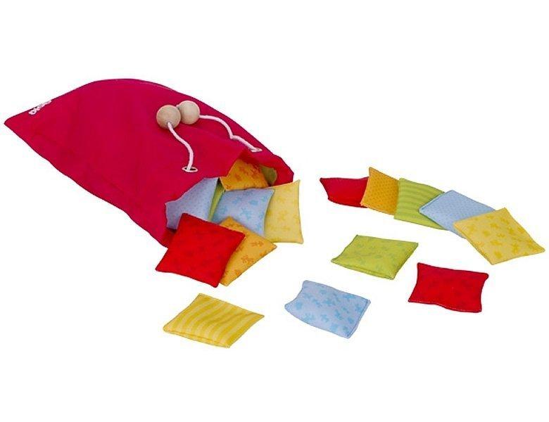 Das Spiel besteht aus 20 bunten gefüllten Kissen, die in einem Beutel verborgen sind. Die Spieler müssen durch Tasten und Fühlen passende Paare finden. Wenn Muster und Inhalt übereinstimmen, haben sie gewonnen. Ein spannendes und lehrreiches Spiel für alle Altersgruppen.