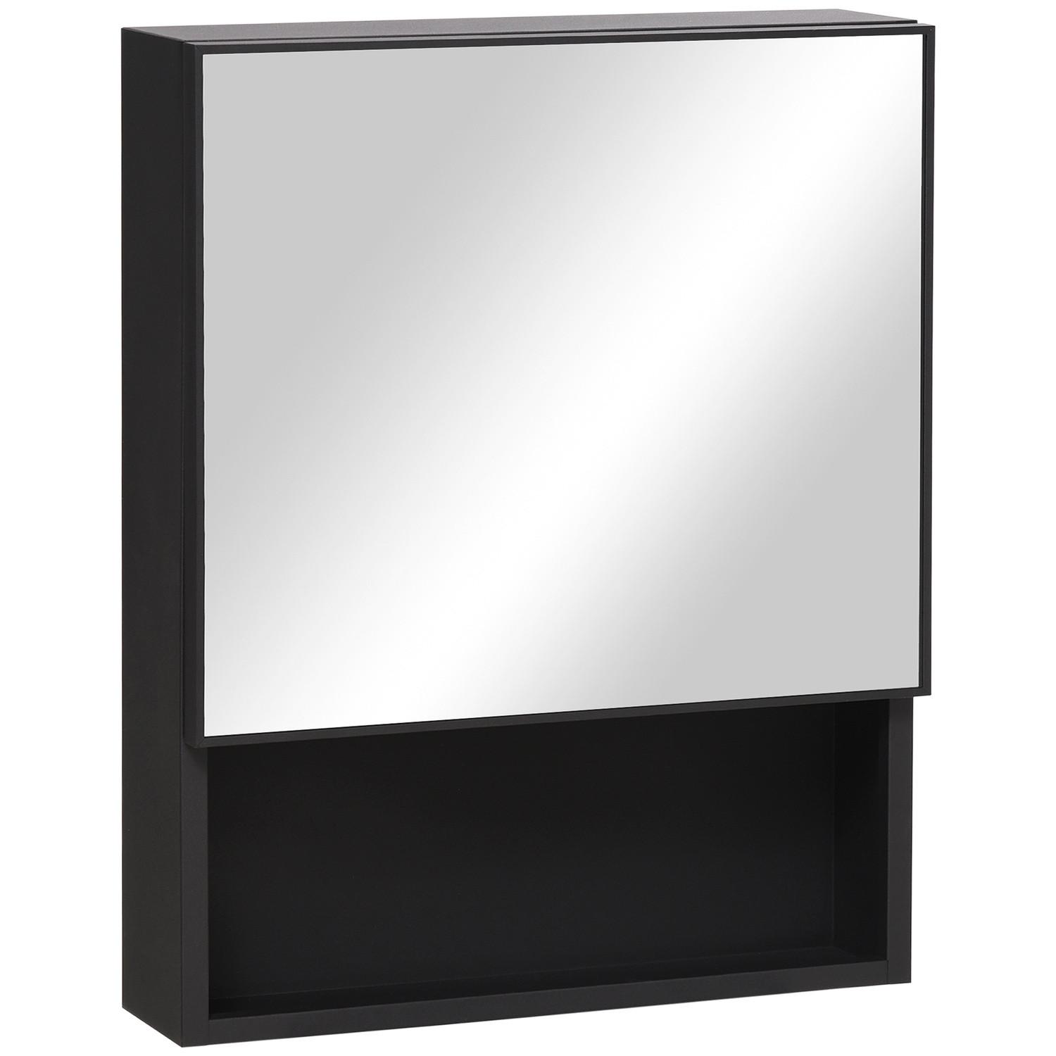 Northio, Armadietto A Specchio Pensile In Acciaio Inossidabile Con 2 Ripiani Interni E Ripiano Aperto, Vetro, Per Bagno, 46X13,5X58 Cm