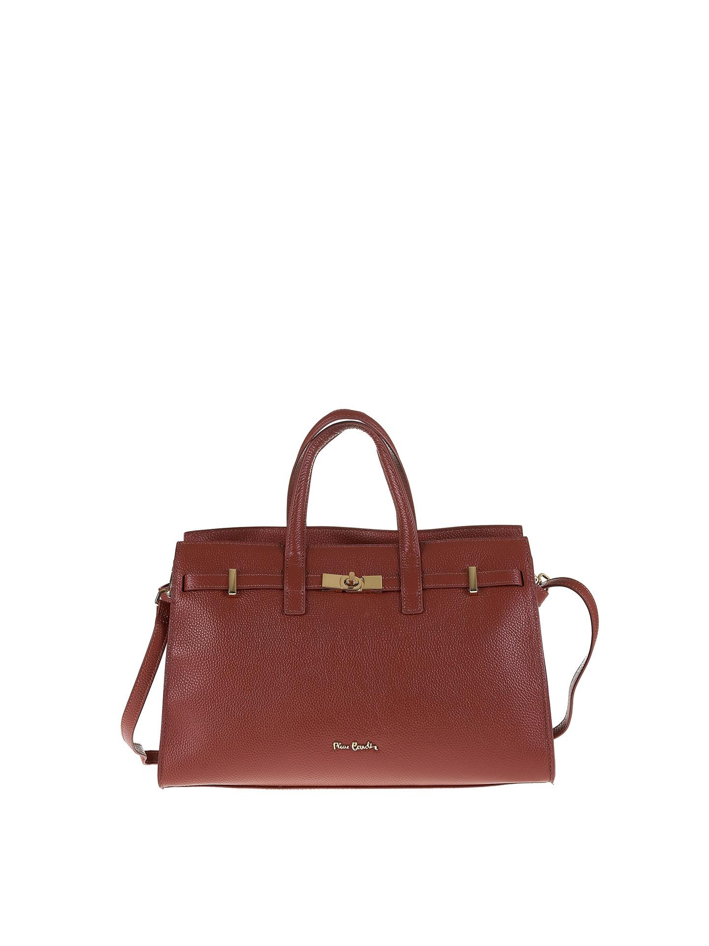 Questa elegante borsa a mano presenta un design strutturato con un manico superiore e una tracolla staccabile, offrendo opzioni di trasporto versatili. Lo scomparto principale è protetto da una cerniera, e una chiusura decorativa color oro aggiunge un tocco sofisticato alla parte anteriore. Realizzata in Italia al 100% in pelle, questa borsa è un accessorio senza tempo.