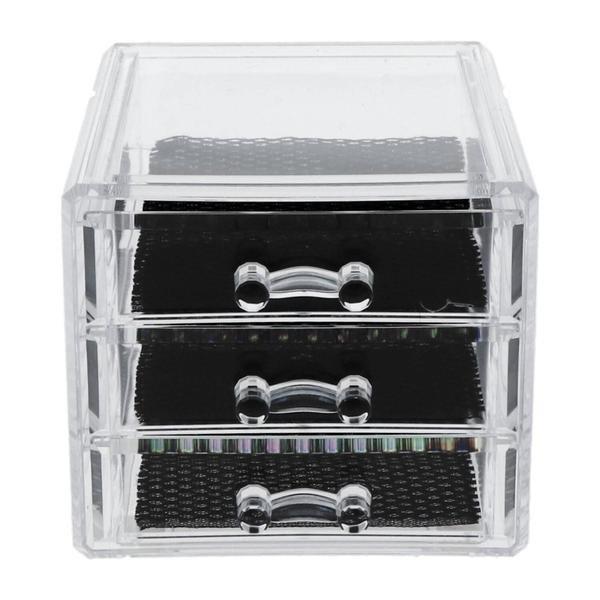 Un portagioie trasparente con 3 cassetti ti offre una buona panoramica di tutti i tuoi gioielli e accessori. La scatola è realizzata in polistirene trasparente, un materiale resistente e facile da pulire. I cassetti sono divisi in scomparti più piccoli che facilitano l'organizzazione delle tue cose.