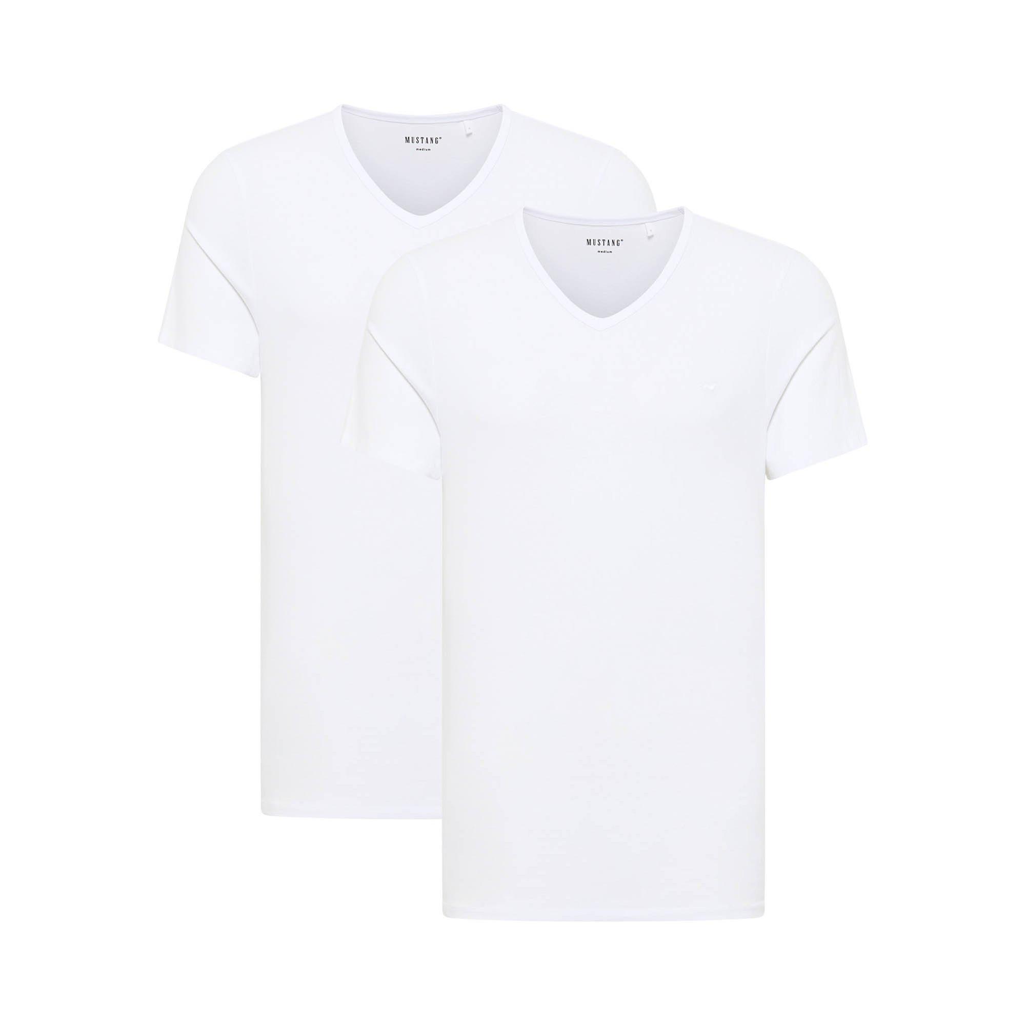 Maglietta basic uomo Amado di MUSTANG in confezione doppia. T-shirt casual con scollo a V e orlo dritto. Tessuto misto con cotone biologico sostenibile ed elastan.