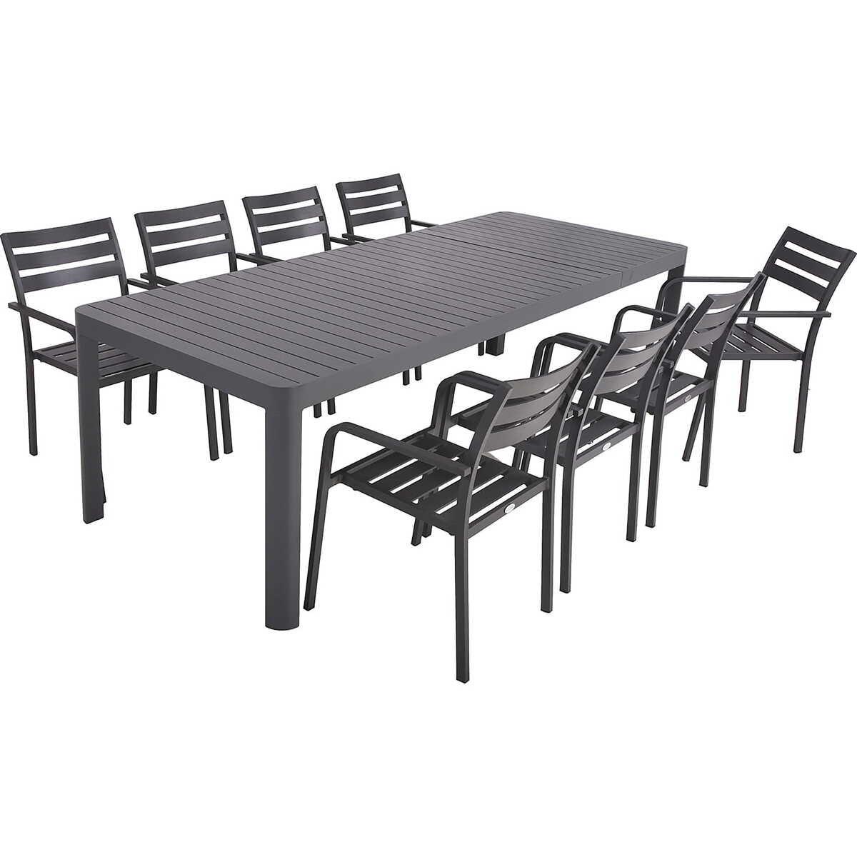 Tavolo allungabile per un uso flessibile dello spazio Alluminio antracite verniciato a polvere per garantire resistenza agli agenti atmosferici e stabilità Sedute comode per un'accogliente posizione di seduta Portata massima delle sedie: 120 kg Portata massima del tavolo: 40 kg Un'eleganza semplice che si integra in qualsiasi ambiente Sedie Treviso leggere ma robuste Perfette per pranzi e cene all'aperto