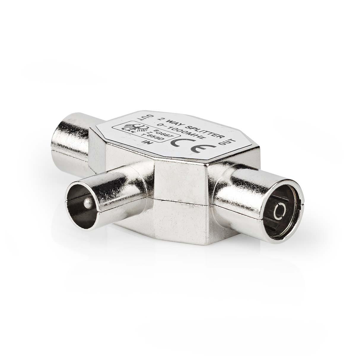 Nedis Adattatore Satellite e Antenna | IEC (Coax) Maschio | 2x Coax Femmina | Nichelato | 75 Ohm | Separatore a T | Metallo | Argento | 1 pz. | Scatola