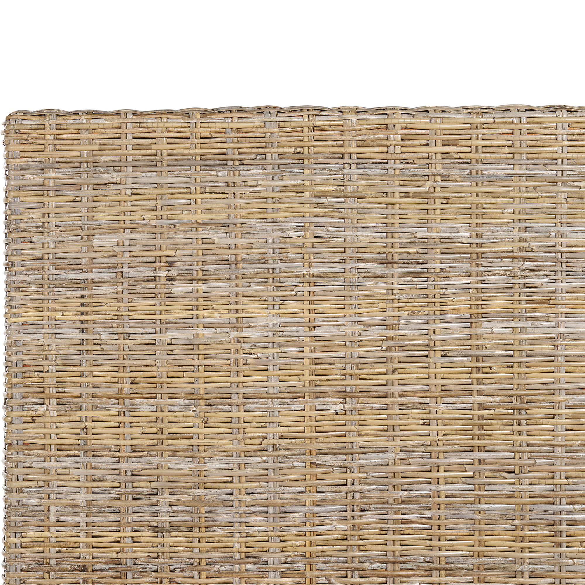 Letto Boho con testiera in vimini . Sperimenta il fascino della natura con il nostro affascinante letto in rattan. Realizzato interamente a mano con vimini, questo letto esibisce l'eleganza senza tempo del rattan, accentuata dalle sue robuste gambe in mogano scuro. Unendo il fascino organico e la durata, crea un rifugio di comfort e stile nella tua camera da letto. Abbandonati all'abbraccio rilassante di questo letto artigianale.