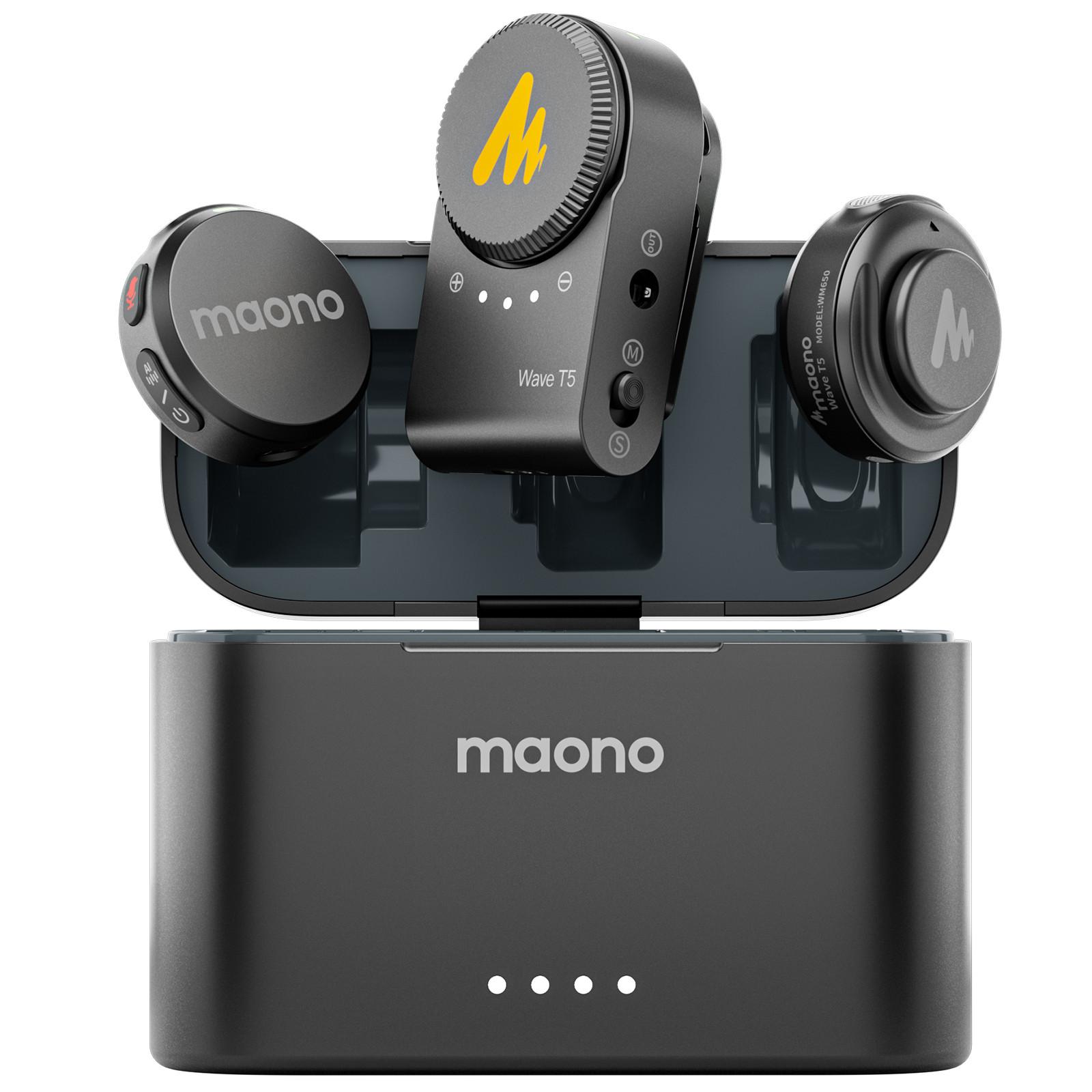 Durata della batteria fino a 30 ore Con 9 ore per trasmettitore e 30 ore con la custodia di ricarica compatta, il microfono Wave T5 consente anche di ricaricare la videocamera durante la registrazione, ideale per lunghe riprese, interviste o dirette streaming.