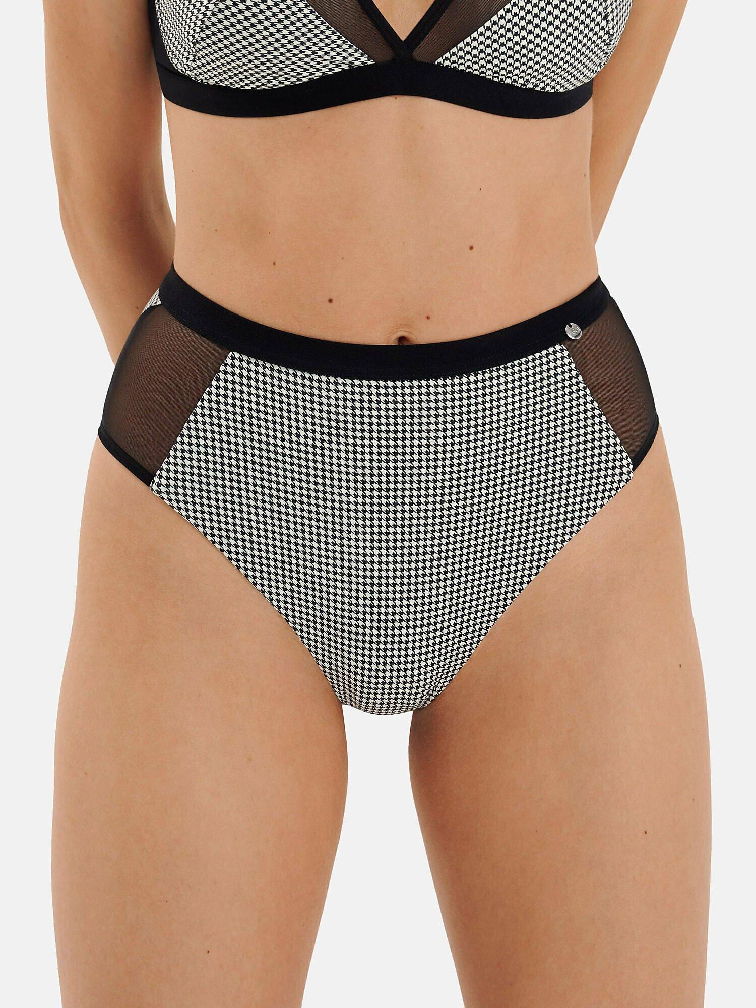 Questo slip a vita alta della collezione Mia combina un classico motivo a quadri con moderni inserti in tulle per un look sofisticato. Il design a vita alta offre una copertura confortevole, mentre l'elastico in vita assicura una vestibilità sicura. È realizzato con una combinazione di tulle e un piacevole micro-materiale in un taglio che affina visivamente la silhouette. Una fascia elastica liscia e piatta è integrata in vita per una vestibilità confortevole, rendendolo ideale per l'uso quotidiano. Un tassello in cotone garantisce un comfort intimo.