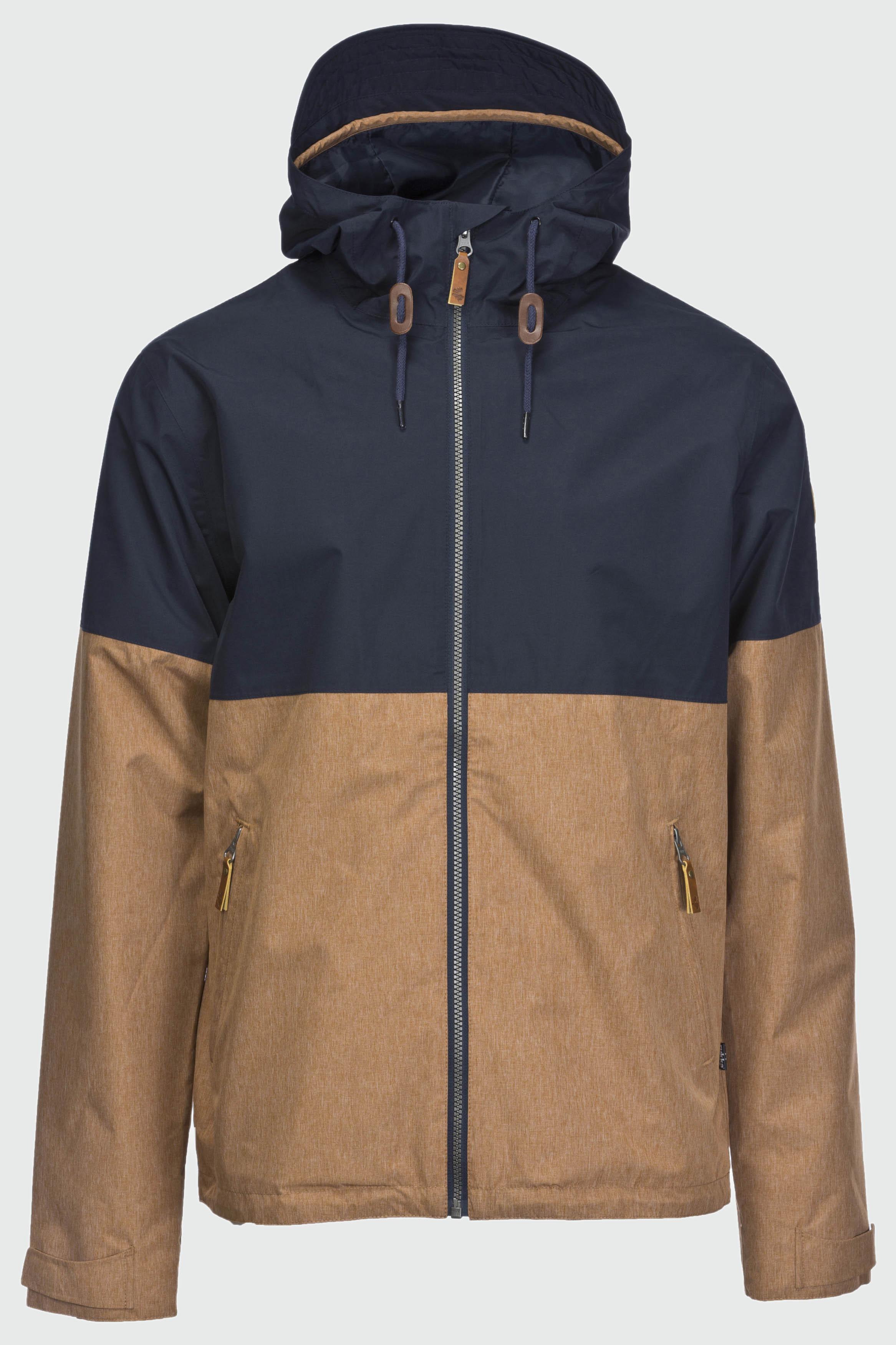 La giacca antipioggia bicolore offre una buona colonna d'acqua di 10.000 mm ed è realizzata in modo sostenibile con PET riciclato.