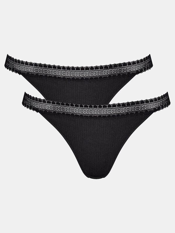 Il Tanga Go Ribbed offre un'opzione comoda ed elegante per l'uso quotidiano. Questa confezione da 2 presenta un design a coste con un delicato bordo in pizzo lungo la cintura, che conferisce un tocco morbido e femminile. Il taglio tanga offre una copertura minima garantendo una silhouette liscia.