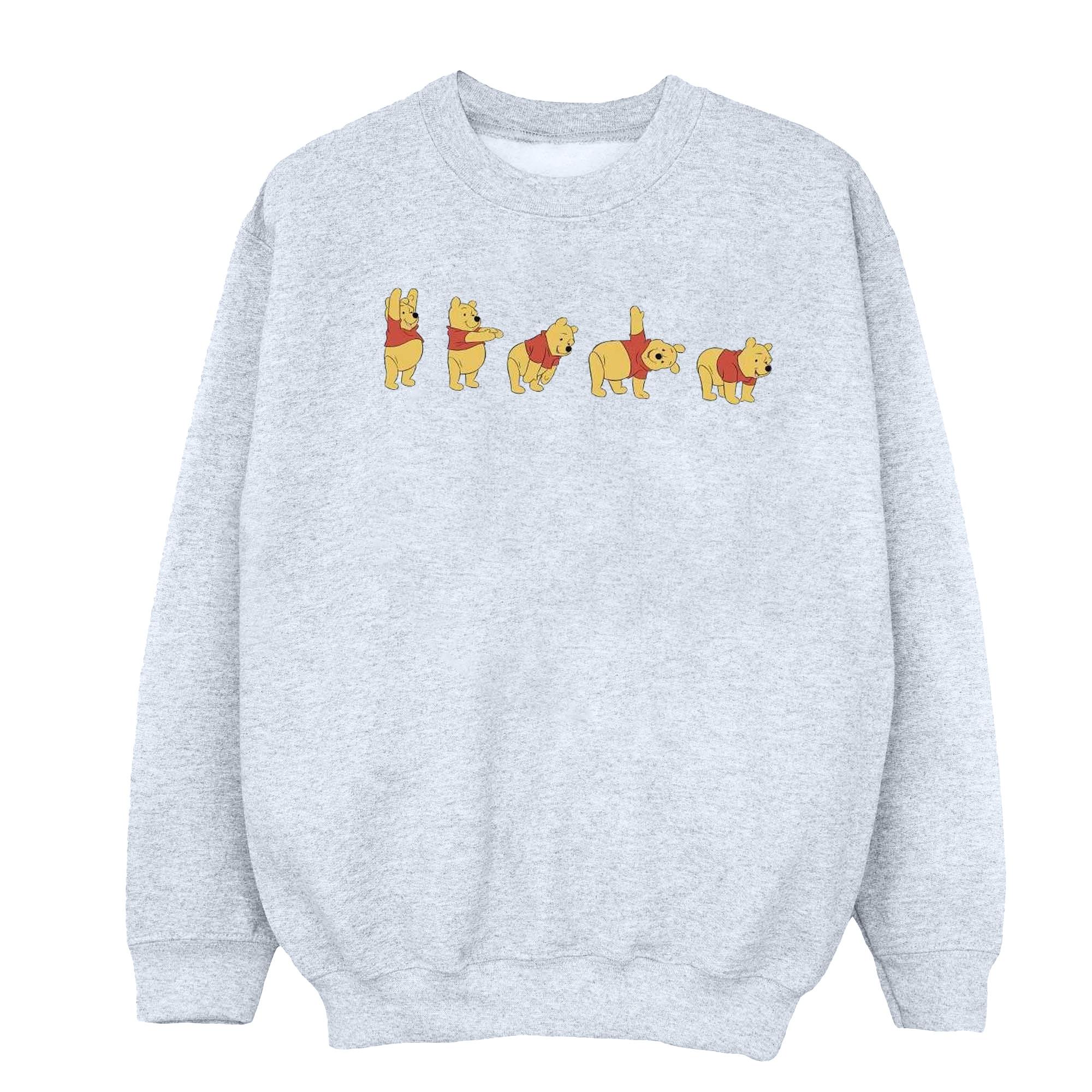 Questa felpa presenta una grafica giocosa di Winnie the Pooh in varie fasi di evoluzione. Il design aggiunge un tocco di fantasia a un capo classico, rendendolo adatto per l'abbigliamento casuale.