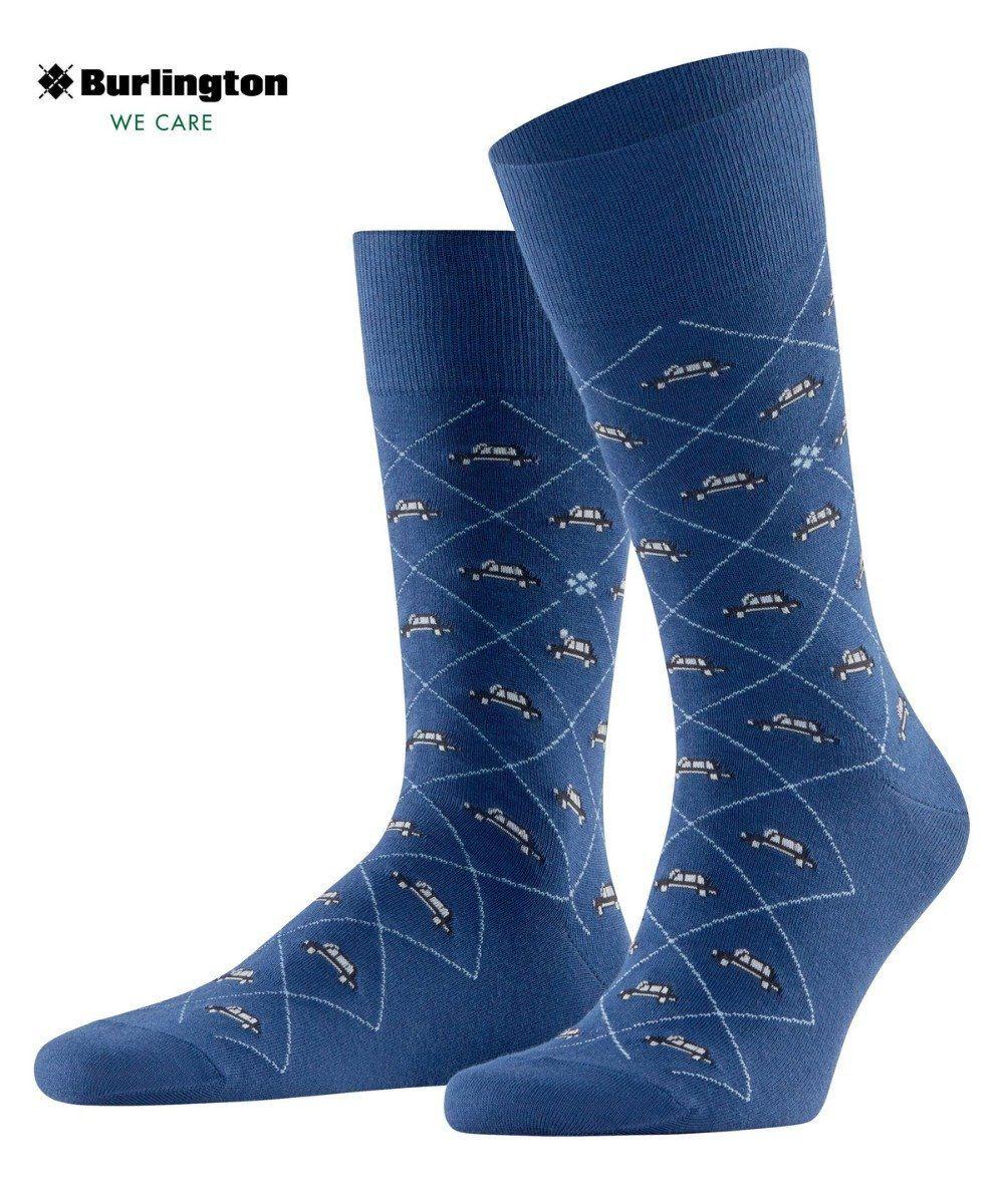 Le calze presentano un motivo a rombi blu con piccole rappresentazioni di automobili, aggiungendo un tocco di personalità a qualsiasi outfit. I dettagli sono realizzati con cura per garantire una finezza e un'eleganza ineguagliabili.